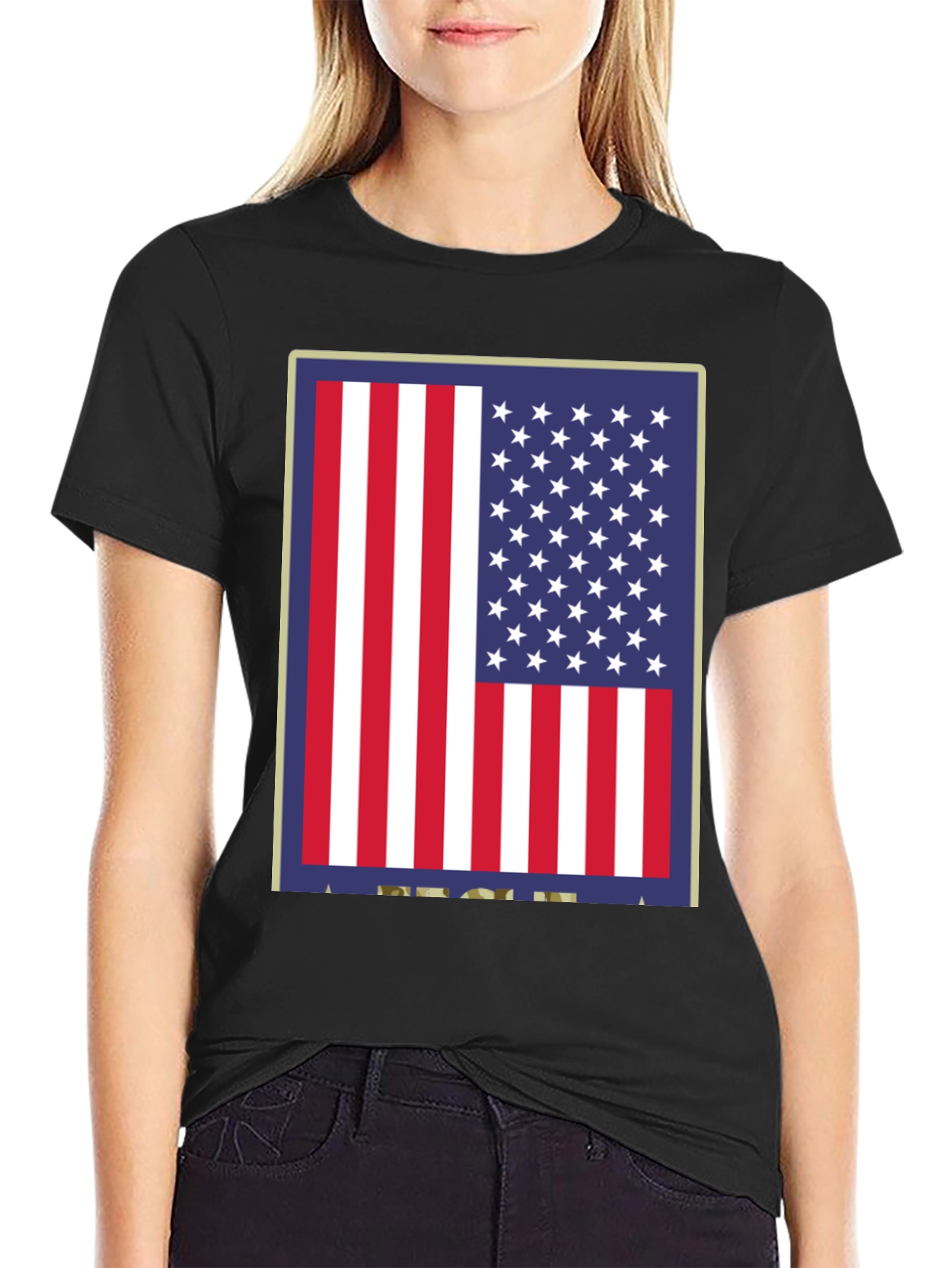 Show your patriotism with this stylish black t-shirt featuring a unique American flag graphic print. The design incorporates the stars and stripes within a bordered rectangle, offering a modern twist on a classic symbol. Made from what appears to be a comfortable and durable fabric, this tee is perfect for everyday wear, holidays, or any occasion where you want to display your American pride. Its casual style makes it easy to pair with jeans, shorts, or khakis. Get yours now and make a statement!