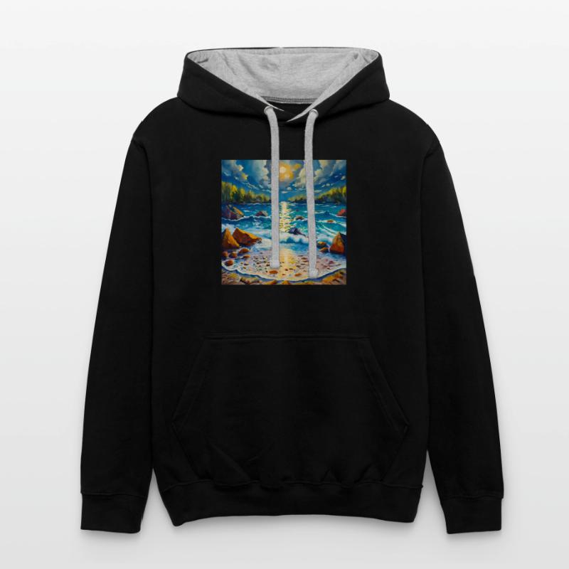 The Unisex Contrast Hoodie is a stylish and comfortable must-have for any wardrobe. Designed with a double-fabric hood featuring a contrasting inner, it adds a bold touch to your look. The matching flat lace drawcords provide an adjustable fit, while ribbed cuffs and hem offer a snug and cozy feel. A tear-out label ensures tag-free comfort, making this hoodie perfect for everyday wear.