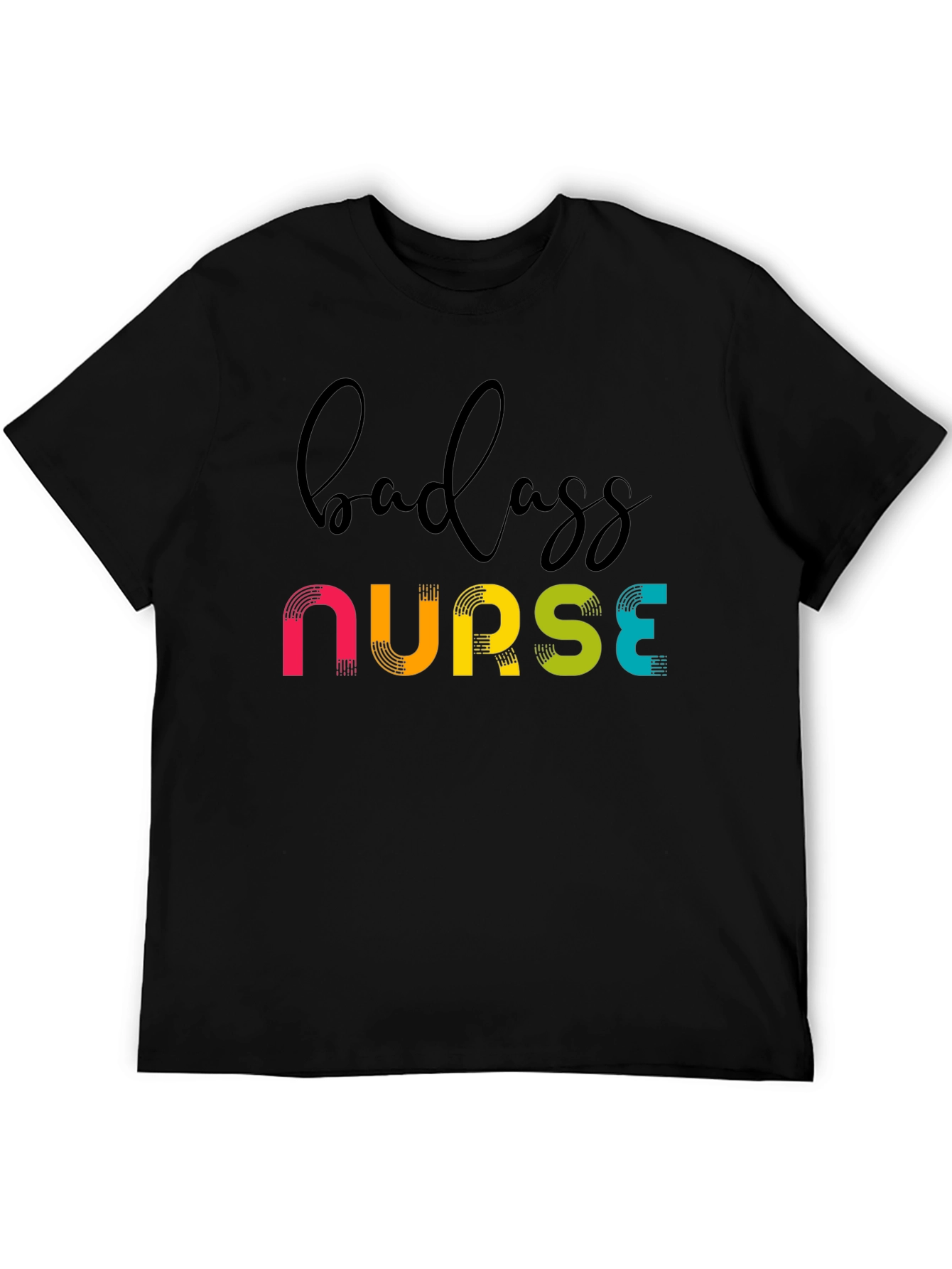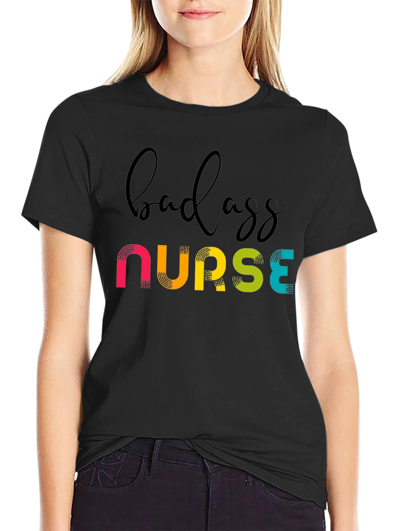 Show off your pride as a nurse with this fun and vibrant "Badass Nurse" t-shirt! This black tee features a playful script font for the word "badass", with the word "NURSE" displayed in a bold, colorful rainbow pattern. The design adds a touch of personality to your everyday work wear. Ideal for nurses who want to express their confidence and dedication, this tee is a great conversation starter. Perfect for casual Fridays at the hospital, nurse appreciation week, or simply as a comfortable and stylish everyday option. Grab yours now and let everyone know you're a badass nurse!