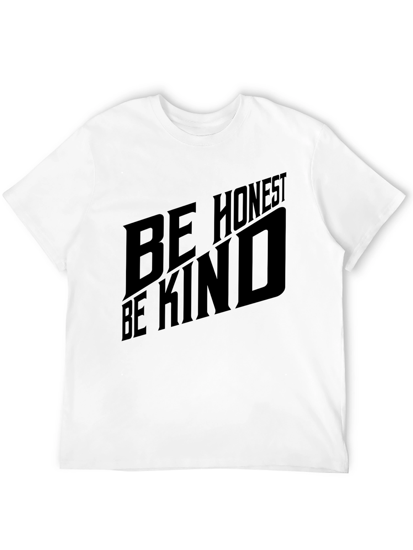Showcase your positive values with this stylish black graphic tee. The shirt features the words "Be Honest, Be Kind" in a bold, slightly slanted font. This tee is perfect for casual outings, expressing a message of kindness and integrity. Made from soft fabric, it offers all-day comfort and effortless style. The classic black color makes it easy to pair with any bottoms, making it a versatile addition to your wardrobe. Make a statement and spread positivity with this unique tee.