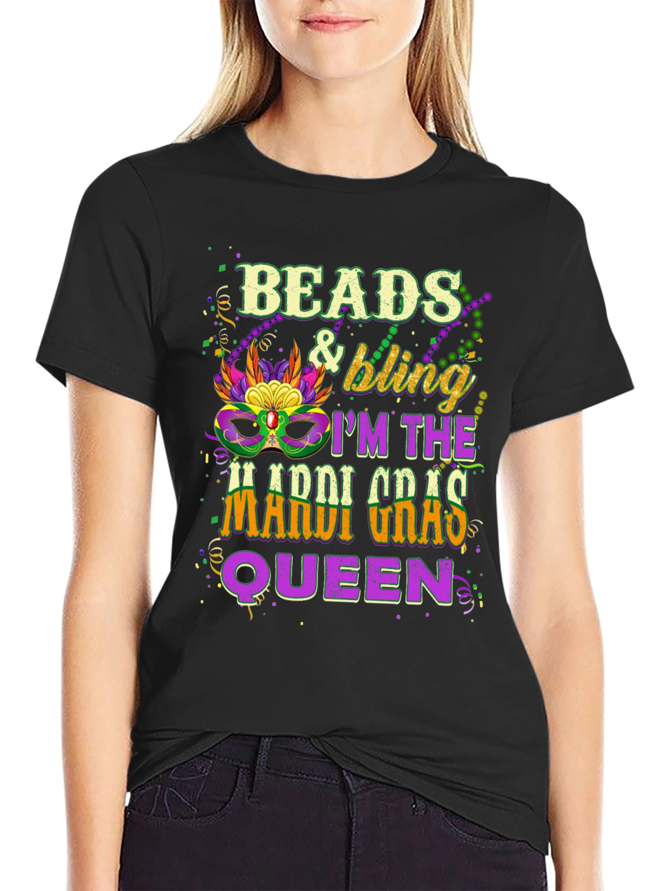 Beads & Bling Mardi Gras Queen Black T-Shirt