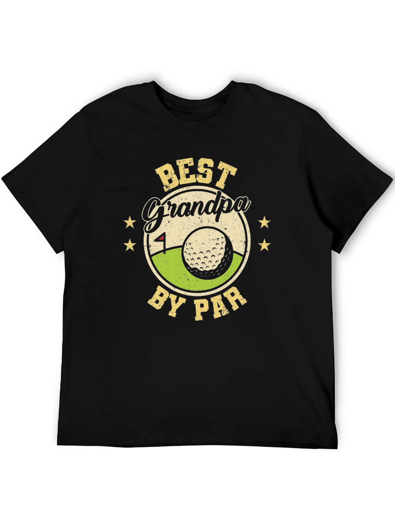 Show your grandpa some love with this stylish "Best Grandpa By Par" golf t-shirt! The black tee features a vintage-inspired graphic with a golf ball, flag, and retro lettering, surrounded by stars. Perfect for the golf-loving grandpa, this shirt is made from a comfortable material, ideal for wearing on the golf course, casual outings, or just relaxing at home. Give the gift of style and affection with this awesome grandpa tee. It's a hole-in-one choice for Father's Day, birthdays, or any occasion!
