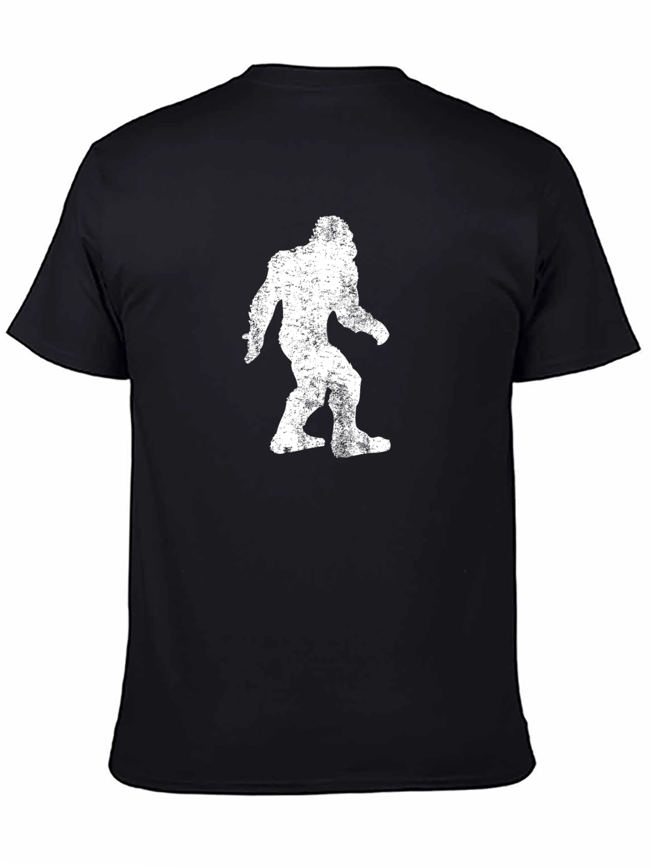 Embrace the legend with this unique black t-shirt featuring a distressed white silhouette of Bigfoot. The design gives a vintage, worn look. Made from soft, breathable fabric, this tee offers both comfort and style. Perfect for casual wear, outdoor adventures, or as a conversation starter. Show off your love for cryptozoology with this eye-catching graphic tee. A must-have for Bigfoot believers and fans of quirky fashion. Get yours today!