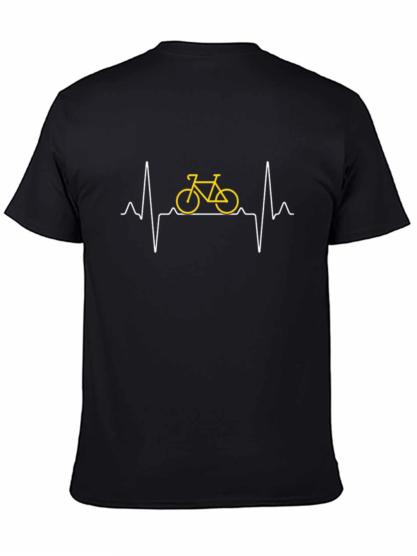 Showcase your love for cycling with this unique black t-shirt. The design features a heartbeat line graphic with a yellow bicycle outline at its center. This shirt is perfect for cyclists, enthusiasts, or anyone who loves a creative and comfortable casual wear. Ideal for everyday use, biking events, or as a thoughtful gift for the cyclist in your life. Made with soft and durable material for lasting comfort. Grab yours today and ride in style!