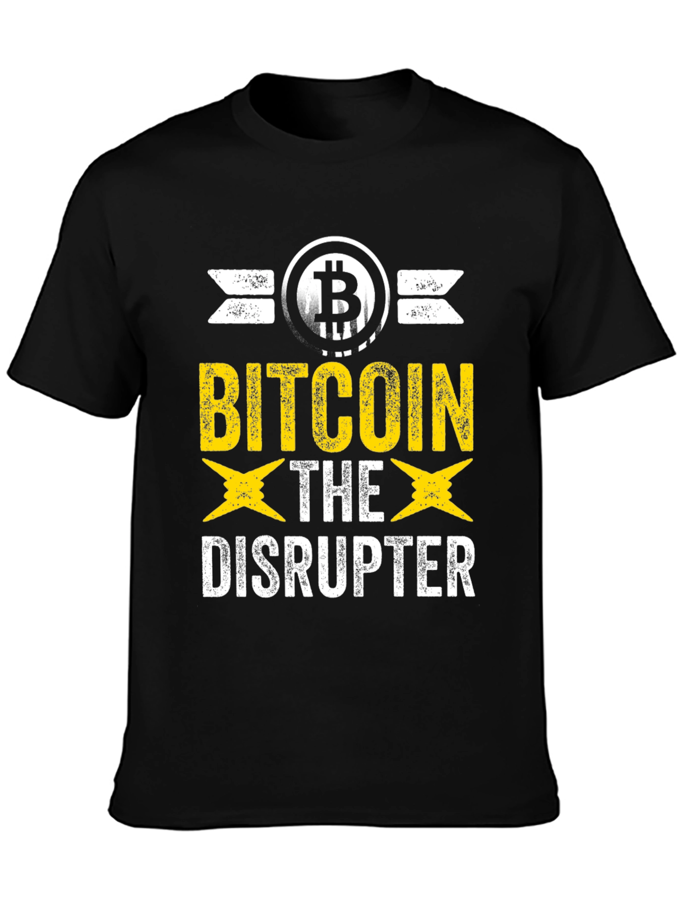 Showcase your belief in the future of cryptocurrency with this bold Bitcoin Disruptor T-shirt. This eye-catching black tee features a distinctive Bitcoin logo, flanked by a distressed-style graphic design. The words "BITCOIN THE DISRUPTER" are emblazoned in a mix of yellow and white fonts, giving it a striking, modern look. Made from a soft, comfortable material, this shirt is perfect for everyday wear. Whether you're a crypto investor, miner, or simply a believer in decentralized currency, this shirt is sure to spark conversations. Pair it with jeans or shorts for a casual look that shows off your unique perspective. Get yours today and join the disruption!