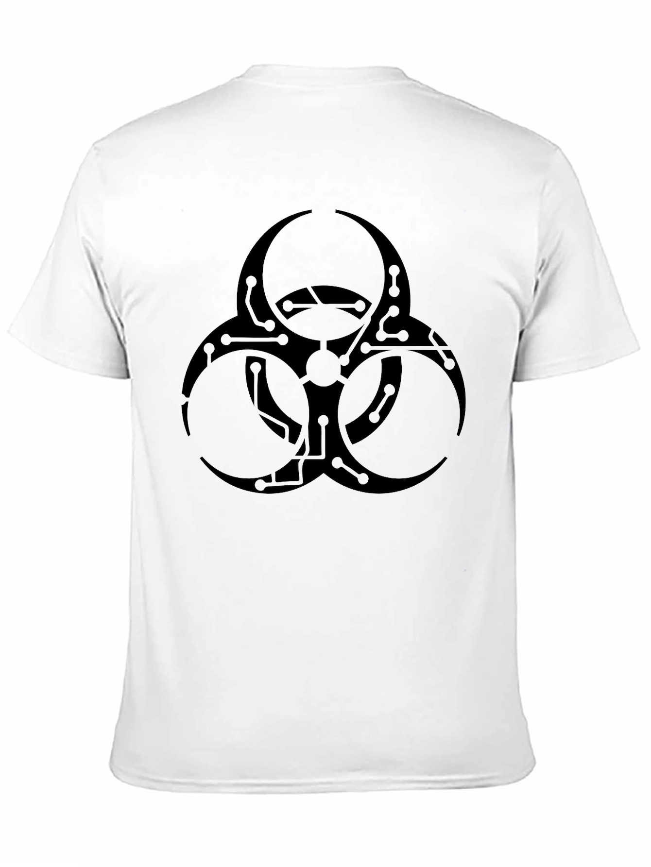 Show off your unique style with this black t-shirt featuring a biohazard symbol intertwined with a circuit board design. Made from comfortable, breathable fabric, this tee is perfect for casual wear, whether you're hanging out with friends, attending a tech convention, or just expressing your edgy personality. The graphic design is bold and eye-catching, making it a great conversation starter. This shirt is ideal for anyone who loves tech, science, or alternative fashion. Add a touch of intrigue to your wardrobe with this one-of-a-kind t-shirt.