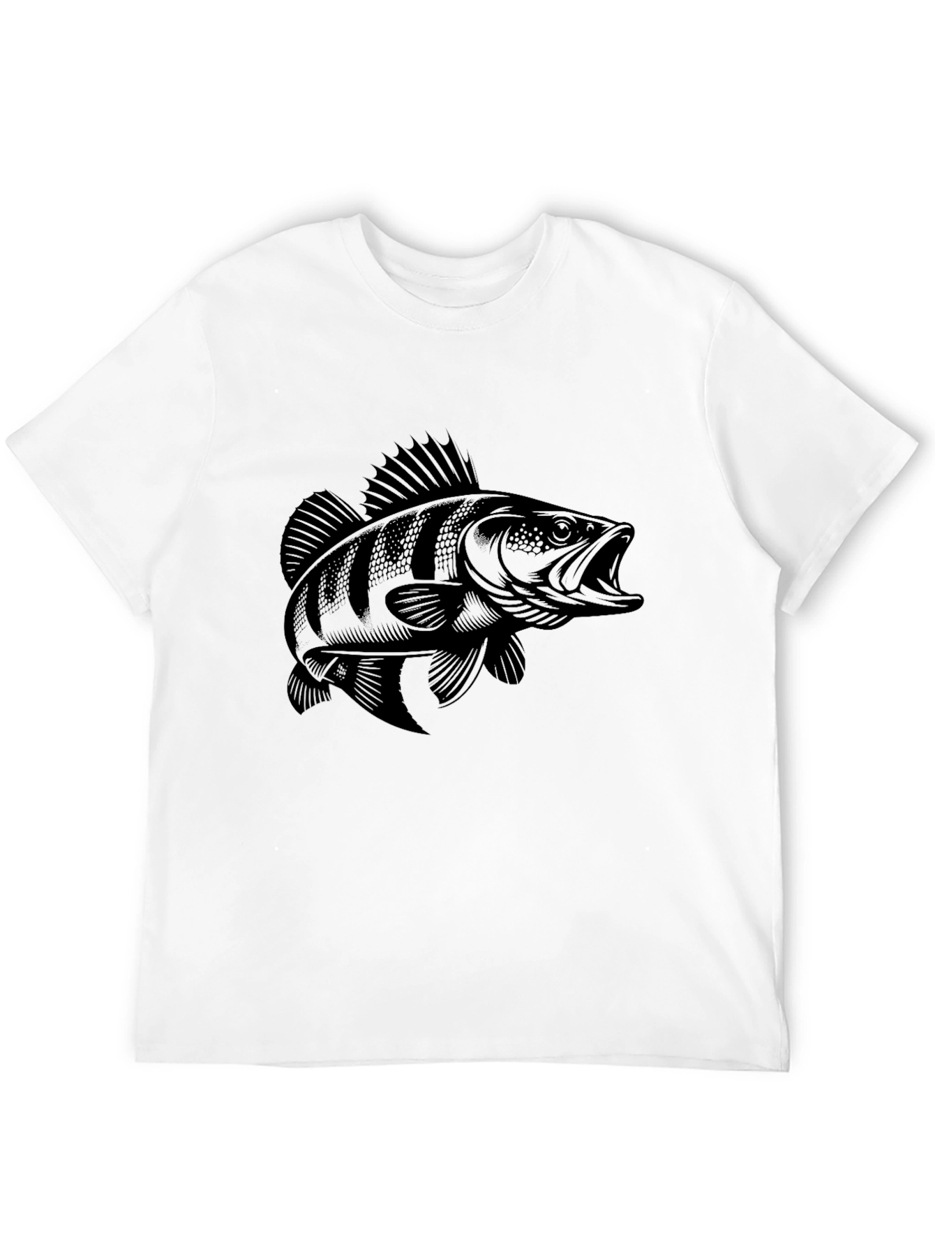 Show off your love for fishing with this stylish black t-shirt. Featuring a detailed graphic of a fish, this tee is perfect for anglers and outdoor enthusiasts. The design showcases a fierce fish, making it a great conversation starter. Made from comfortable, breathable fabric, this shirt is ideal for everyday wear, fishing trips, or casual outings. Its classic fit ensures a relaxed and comfortable feel. Pair it with jeans or shorts for a cool, effortless look. This unique tee is sure to become a staple in your wardrobe. A perfect gift for the fishing lover in your life!
