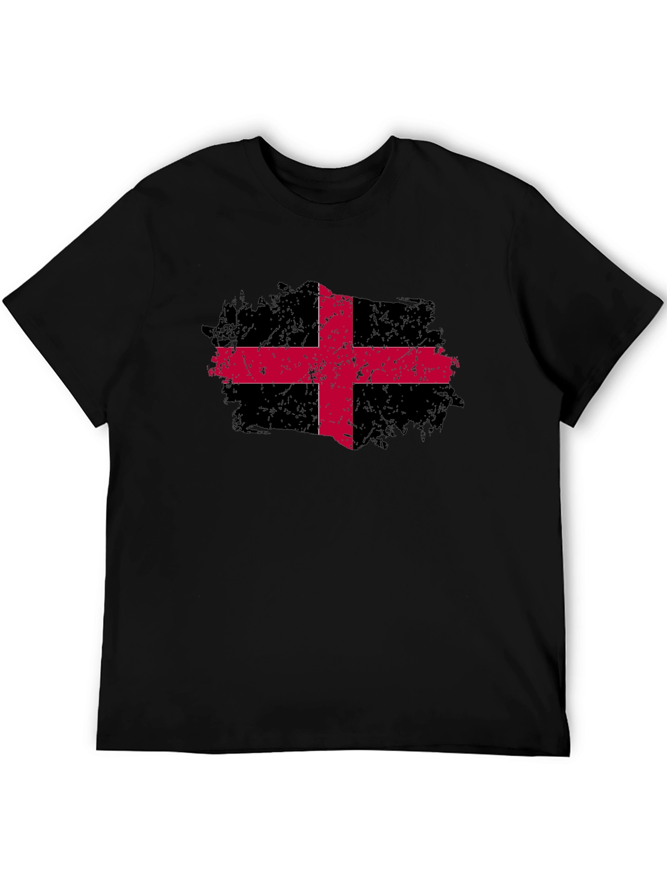 Show off your unique style with this eye-catching black t-shirt. The shirt features a bold red cross graphic, adding a touch of edgy flair to your casual wear. Made from a soft and comfortable fabric, this tee is perfect for everyday wear. The classic fit ensures a relaxed and flattering silhouette for all body types. Whether you're heading to a casual hangout or running errands, this t-shirt is a versatile choice. Pair it with jeans, shorts, or your favorite bottoms for a stylish and effortless look. Stand out from the crowd and express your individuality with this standout t-shirt.
