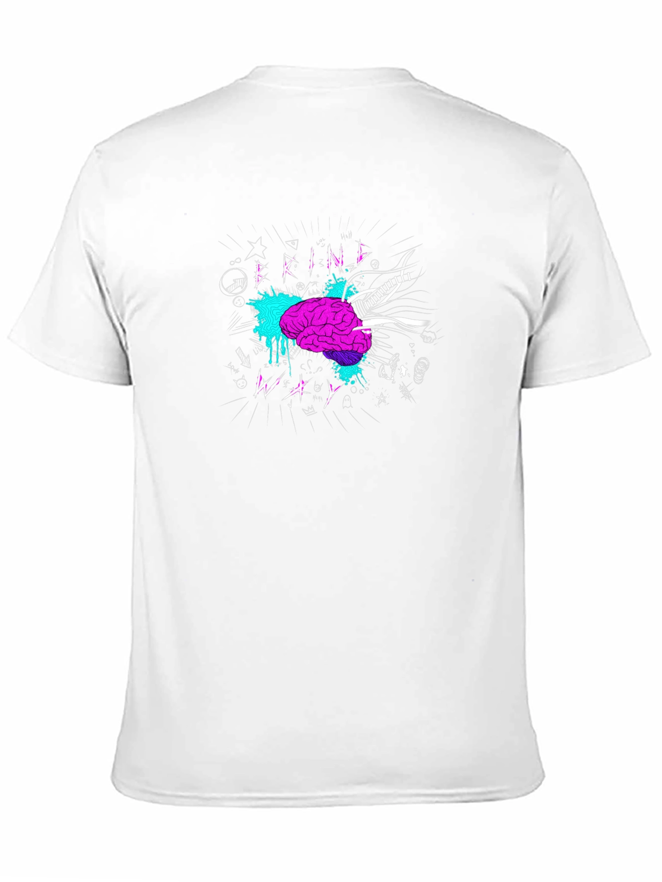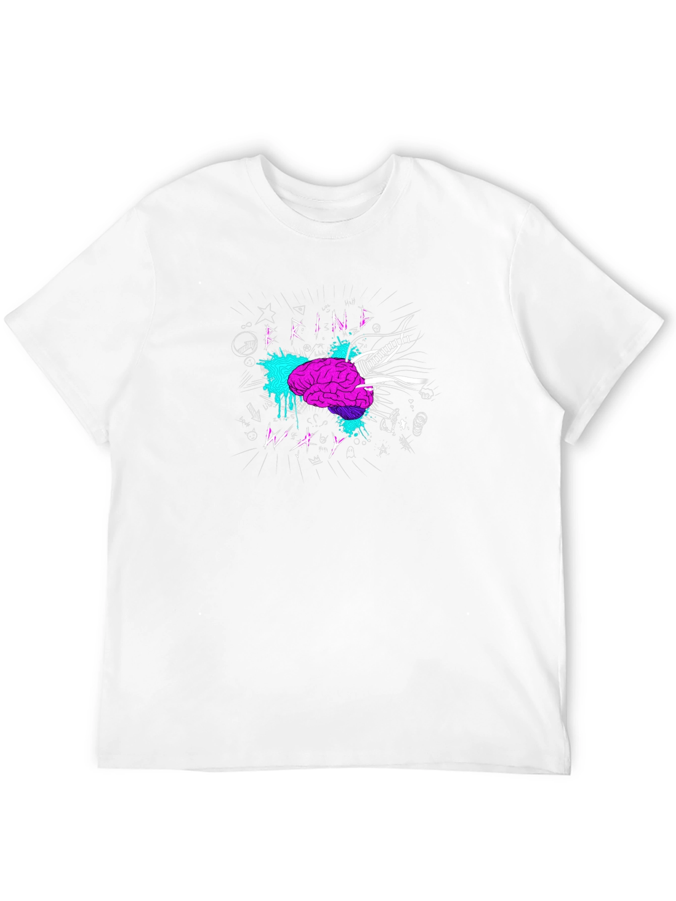 Express your unique style with this eye-catching black t-shirt featuring a vibrant brain wave graphic design. The artistic print showcases a vivid purple brain overlaid with teal and white artistic elements, set against a splash of creative doodles. Made from a comfortable-looking fabric, this tee is perfect for casual wear, making a statement wherever you go. Pair it with jeans or shorts for an effortlessly cool and creative look. This unique tee is sure to be a conversation starter and a bold addition to your wardrobe.