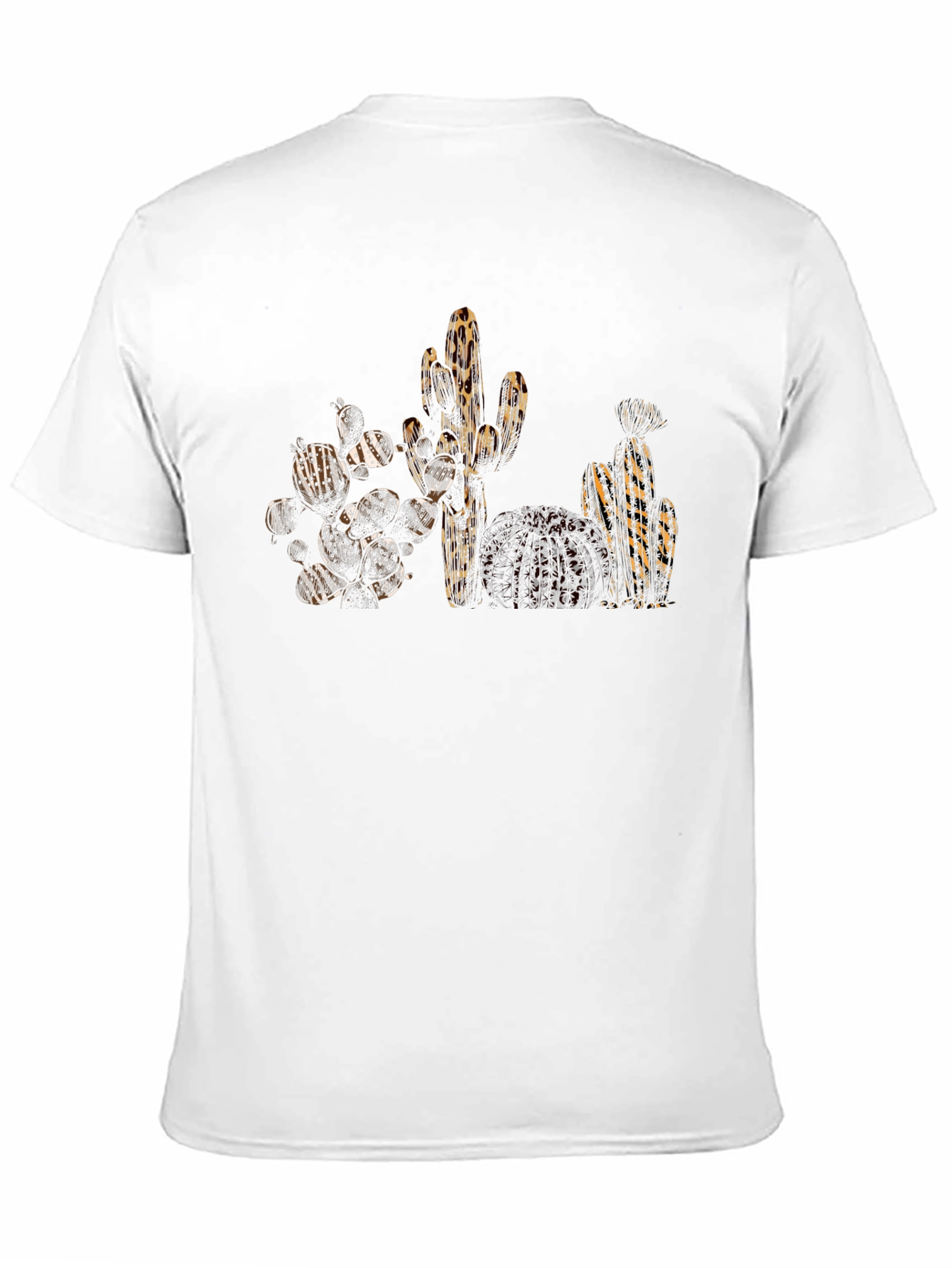 Showcase your wild side with this stylish black t-shirt featuring a unique cactus design. The striking leopard print pattern overlaid on various cacti creates an eye-catching and modern look. Made from a comfortable, breathable fabric, this tee is perfect for everyday wear. Pair it with jeans for a casual vibe or dress it up with a jacket for a night out. This tee makes a bold statement without sacrificing comfort. A must-have for any fashion-forward wardrobe. Ideal for those who love desert aesthetics with a twist.