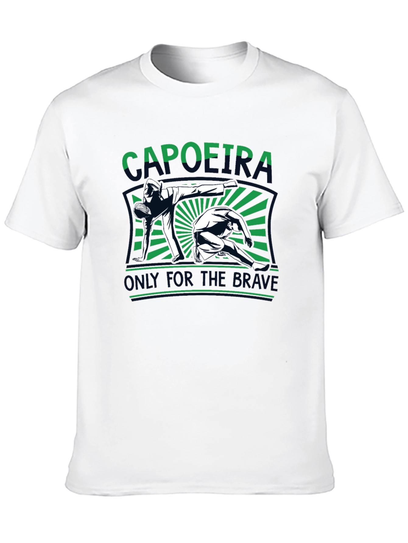 Showcase your passion for Capoeira with this striking graphic tee. Featuring a bold design of two figures engaged in a dynamic martial arts pose, this t-shirt is perfect for enthusiasts and practitioners alike. The vibrant green and contrasting details add a touch of flair, making it a standout piece in any wardrobe. Made from comfortable, breathable fabric, this t-shirt is ideal for casual wear, workouts, or representing your love for Capoeira. Durable and stylish, this tee is sure to become a favorite.