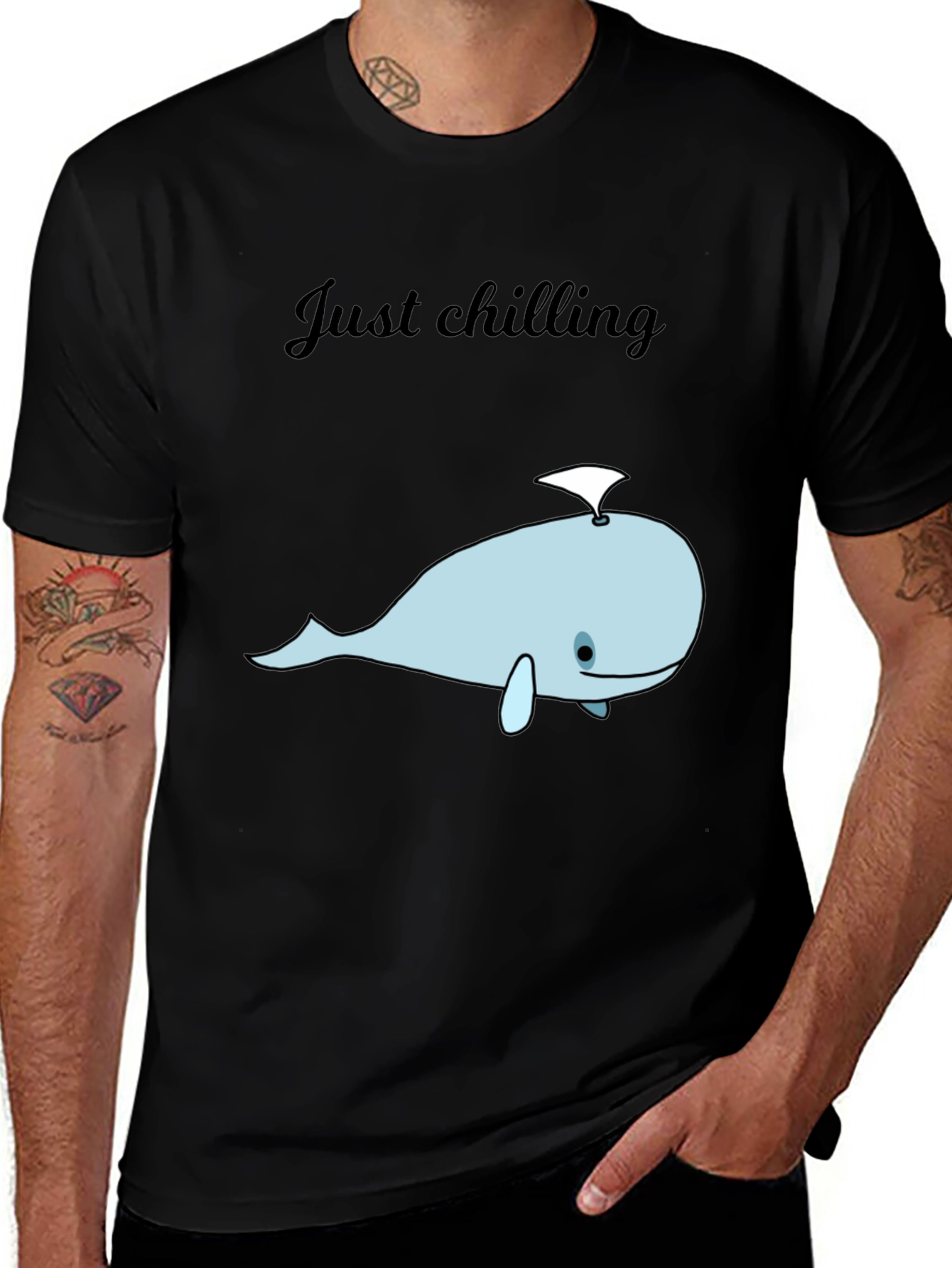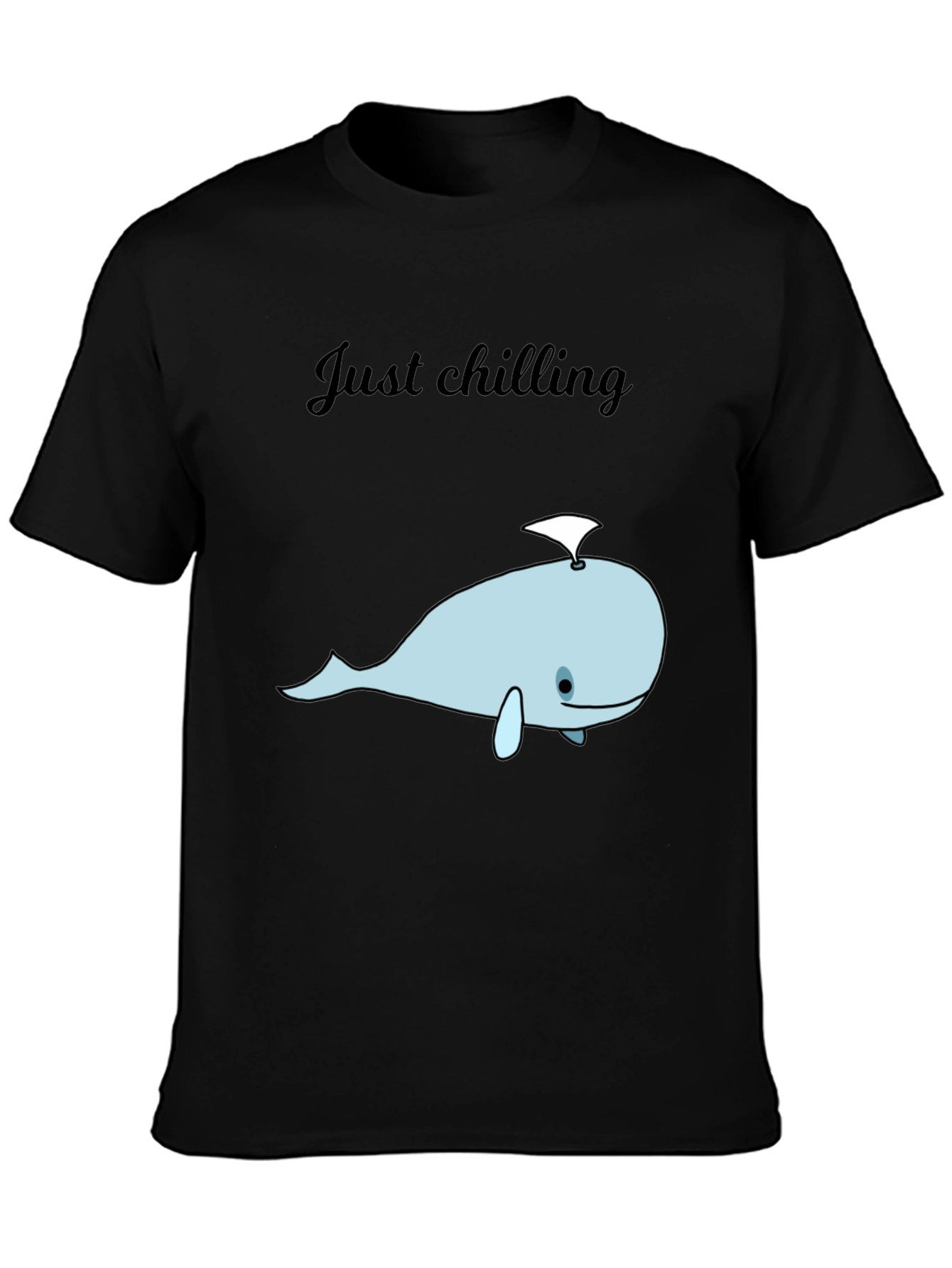 Embrace laid-back vibes with this stylish black graphic tee. Featuring a cute, light blue cartoon whale design with the words "Just chilling" above, this shirt is perfect for casual wear. The soft, breathable fabric ensures all-day comfort, making it ideal for lounging at home, running errands, or meeting up with friends. Show off your fun-loving personality with this unique and eye-catching design. A must-have addition to any relaxed wardrobe. Get yours now and dive into comfort and style!