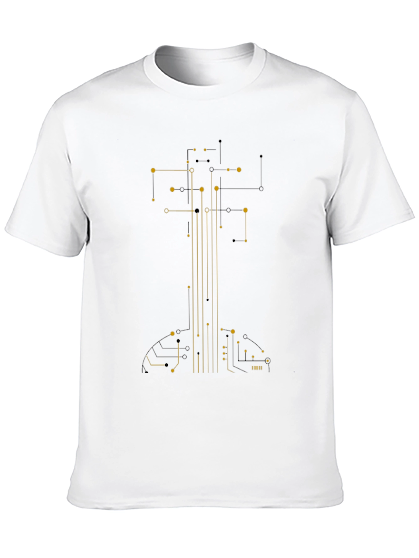 Elevate your wardrobe with this stylish black t-shirt featuring a unique circuit board graphic. The design showcases a modern aesthetic with intricate lines and geometric patterns in a vibrant yellow color. Made from a comfortable, breathable fabric, this t-shirt is perfect for everyday wear. The eye-catching design makes it a great conversation starter and a must-have for tech enthusiasts. Pair it with jeans or shorts for a casual yet trendy look. Whether you're coding at home or hanging out with friends, this circuit board t-shirt will keep you comfortable and stylish.