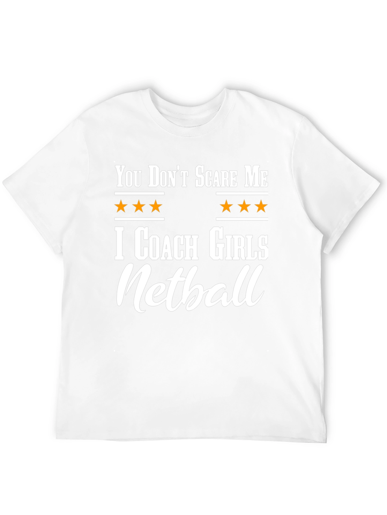 Show your love for coaching and netball with this stylish black t-shirt! This tee features the humorous saying "You Don't Scare Me I Coach Girls Netball" in white text, accented with star designs. Made from a comfortable material, it's perfect for wearing during games, practices, or casual outings. Great for netball coaches who want to add a touch of fun to their wardrobe. A perfect gift for the coach in your life!