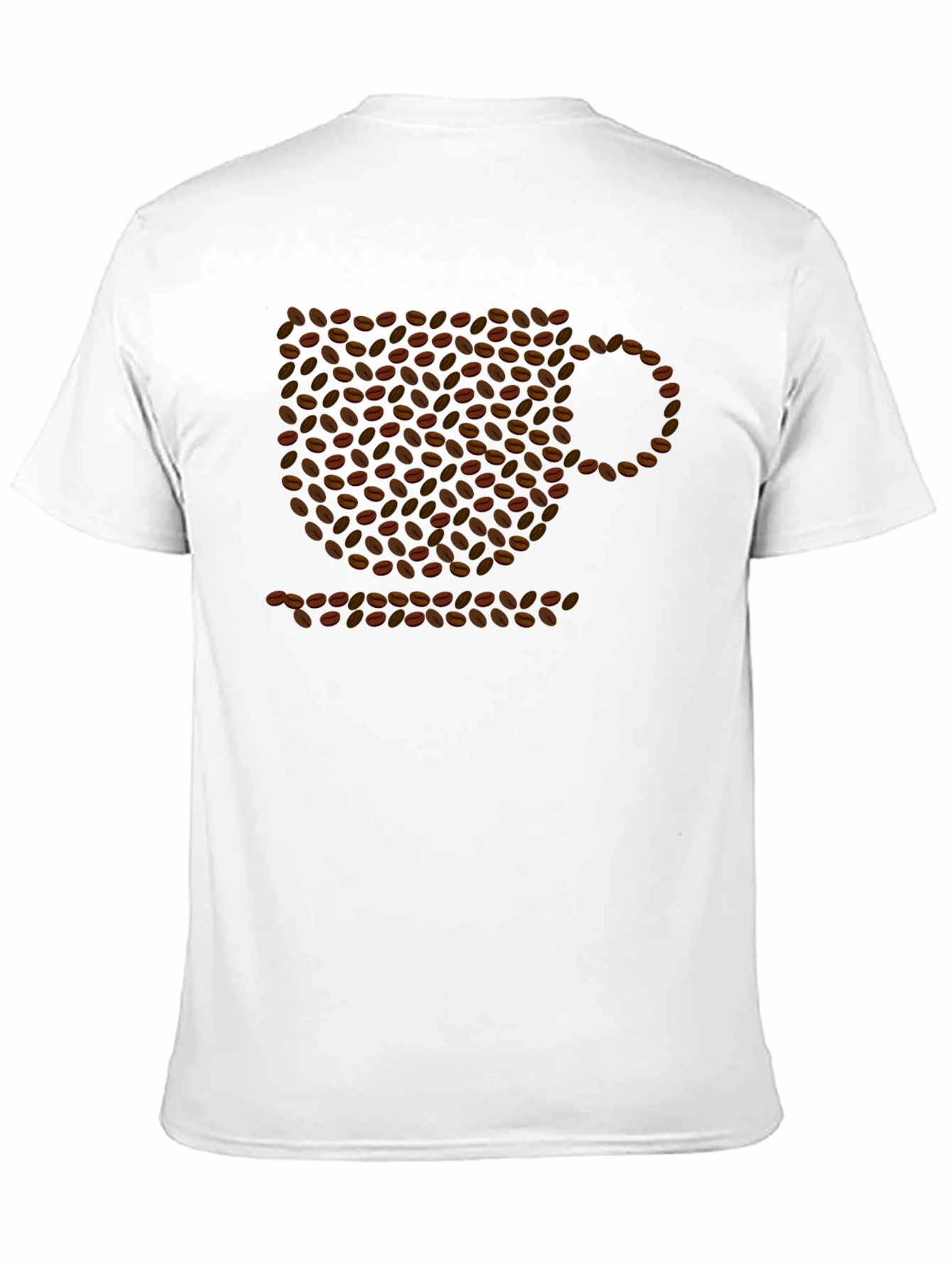 This stylish black t-shirt features a unique graphic design of a coffee cup formed entirely from coffee beans. The clever and eye-catching design is perfect for coffee lovers and anyone who appreciates creative artwork. Made from a comfortable, breathable fabric, this tee is ideal for everyday wear, casual outings, or lounging at home. The classic fit and short sleeves ensure a relaxed and effortless style. Show off your love for coffee with this one-of-a-kind tee that's sure to spark conversations and turn heads wherever you go. It's a must-have addition to any wardrobe!