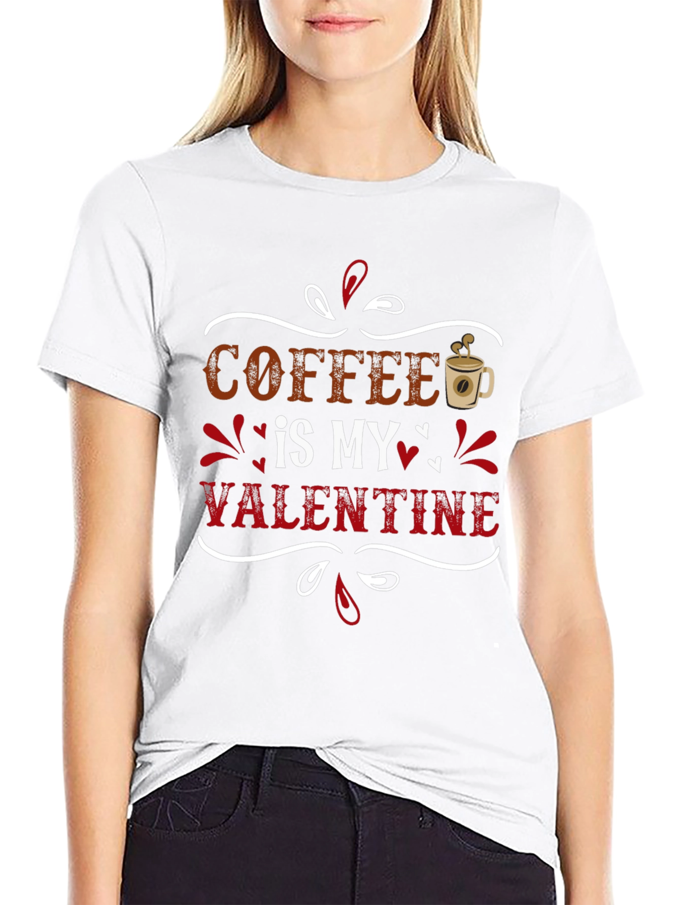 Show your love for coffee this Valentine's Day with this stylish graphic t-shirt. The design features the phrase "Coffee is My Valentine" in a decorative font, adorned with coffee beans, hearts, and ornamental flourishes. This tee is made from a soft, breathable fabric in a classic black colorway. The bold graphic print ensures you'll stand out. This shirt is perfect for casual outings, coffee dates, or lounging at home. Whether you're single or taken, let everyone know that coffee is your true love with this unique and eye-catching tee!