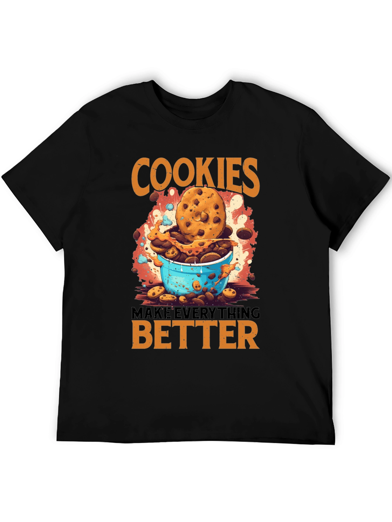 Indulge your sweet tooth with this fun and stylish t-shirt! Featuring a vibrant graphic of a bowl overflowing with delicious cookies and the playful phrase "Cookies Make Everything Better," this shirt is sure to bring a smile to your face. The design pops with warm, inviting colors. Perfect for casual outings, cookie baking sessions, or simply lounging at home, this tee is a comfortable and expressive way to showcase your love for everyone's favorite treat. A must-have for cookie enthusiasts of all ages!