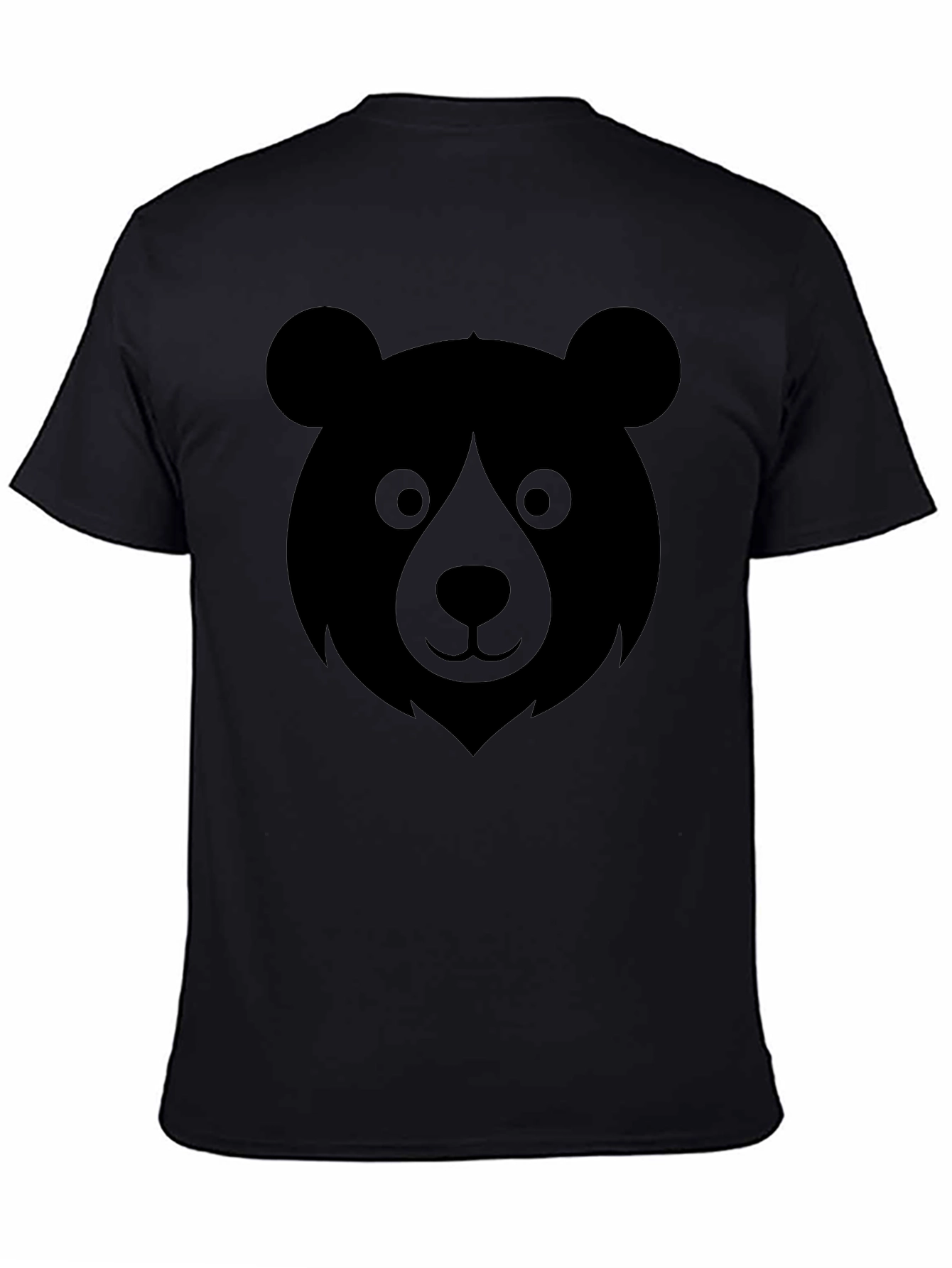 This classic black t-shirt features a bold, cartoon-style bear graphic on the front. The bear is a solid black silhouette with round eyes and a friendly expression, making it a fun and eye-catching design. Made from what appears to be a soft, breathable cotton blend, this tee offers a comfortable fit for everyday wear. The simple yet stylish design makes it a versatile addition to any wardrobe. Wear it casually with jeans or shorts for a relaxed weekend look, or dress it up with a jacket for a more edgy style. Perfect for animal lovers or anyone who enjoys a bit of playful fashion. This t-shirt is a statement piece that adds personality to your outfit. It also makes a great gift!