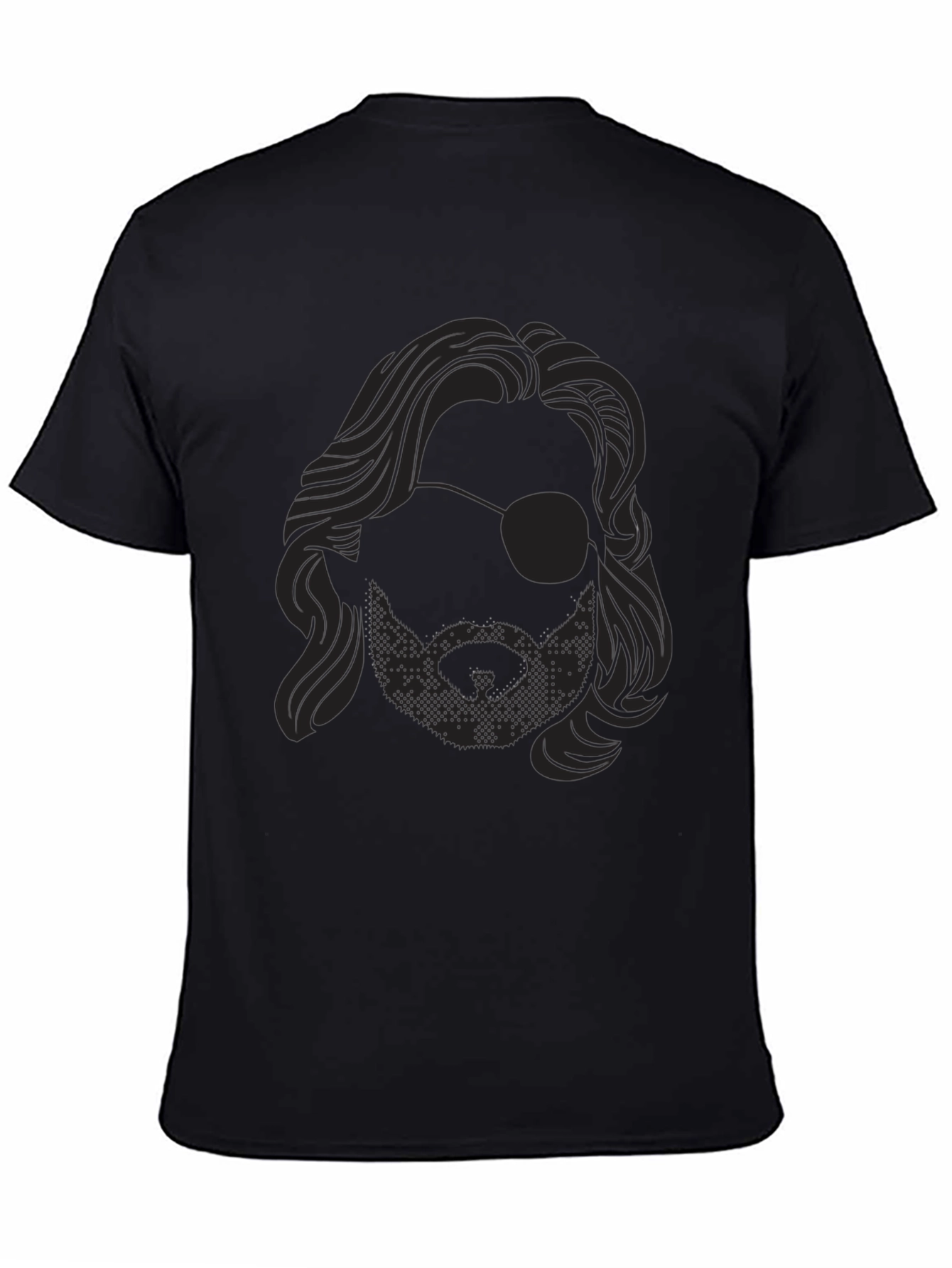 Show off your laid-back style with this cool black t-shirt. Featuring a graphic of a dude with a beard and an eye patch. The design is subtle yet stylish, making it a versatile addition to your wardrobe. Made from soft, breathable fabric, this tee ensures comfort all day long. Perfect for casual outings, concerts, or just chilling at home. Pair it with jeans or shorts for an effortlessly cool look. This unique t-shirt is sure to turn heads and spark conversations wherever you go.