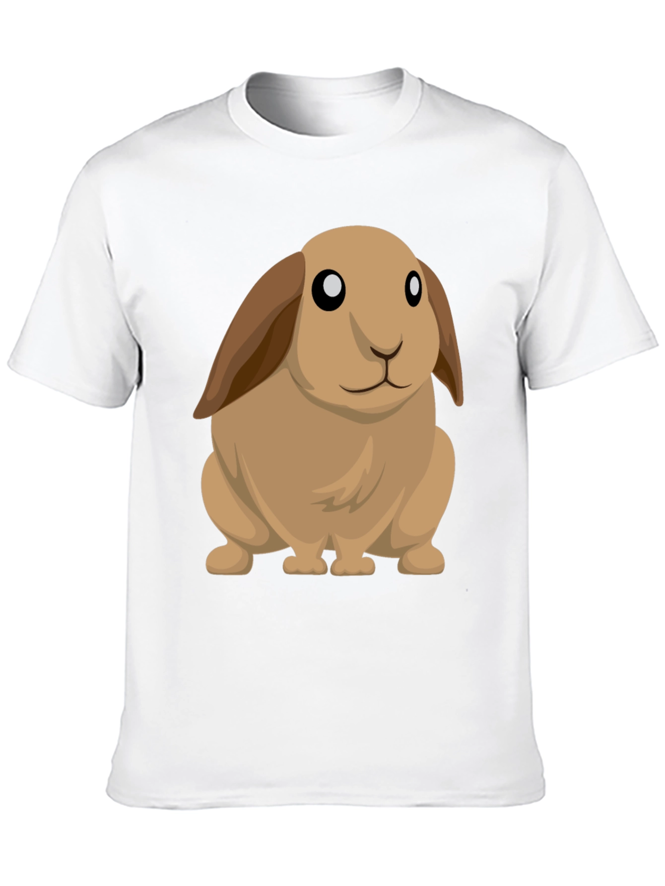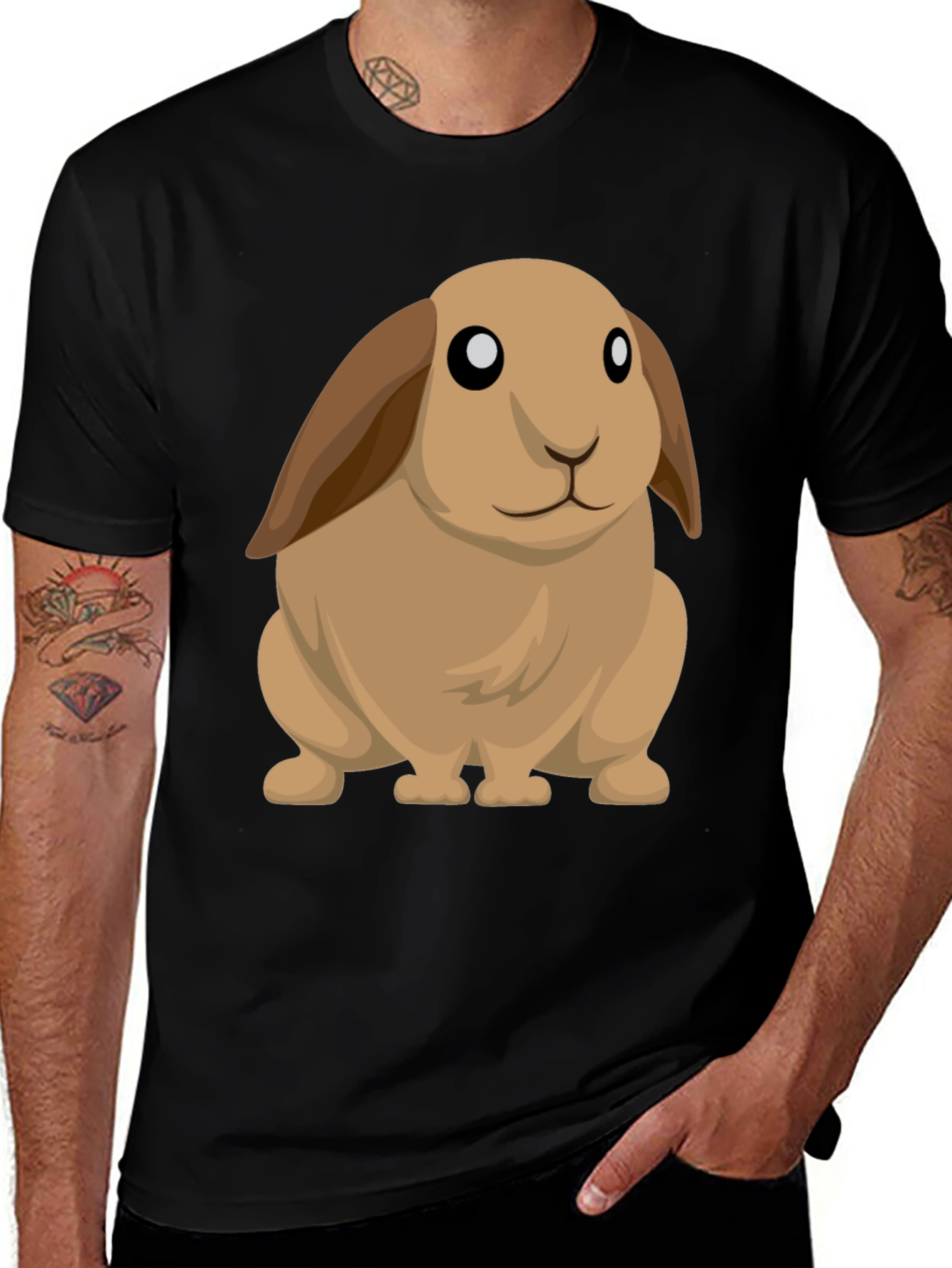 Show off your love for animals with this adorable black t-shirt! The shirt features a charming cartoon illustration of a tan bunny rabbit with floppy ears. Made from a comfortable material, this tee is perfect for everyday wear. The cute bunny design makes it a great choice for casual outings, lounging at home, or as a fun gift for rabbit lovers. Its simple design can be easily paired with jeans, shorts, or skirts. Add a touch of whimsy to your wardrobe with this unique and comfortable t-shirt!