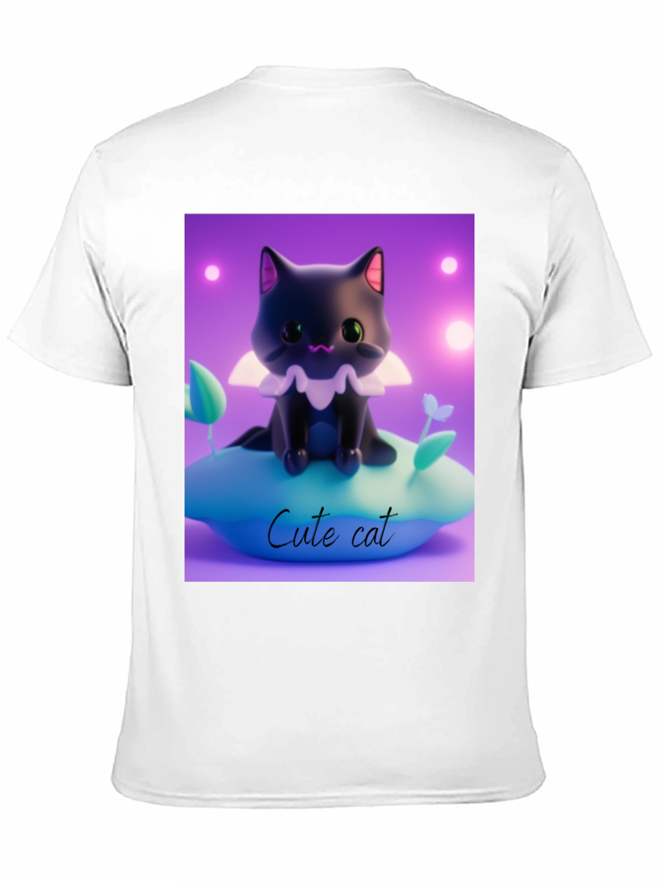 Show off your love for adorable animals with this unique graphic tee! Featuring a vibrant, high-quality print of a cute black cartoon cat sitting on a pillow with the text "Cute cat" against a soft purple background, this shirt is sure to turn heads. Made from comfortable black cotton, this tee offers a relaxed fit that's perfect for everyday wear. Whether you're lounging at home, running errands, or meeting up with friends, this eye-catching t-shirt will add a touch of whimsy to any outfit. The bold graphic is sure to be a conversation starter, making it a great gift for cat lovers and anyone who appreciates fun, stylish apparel.