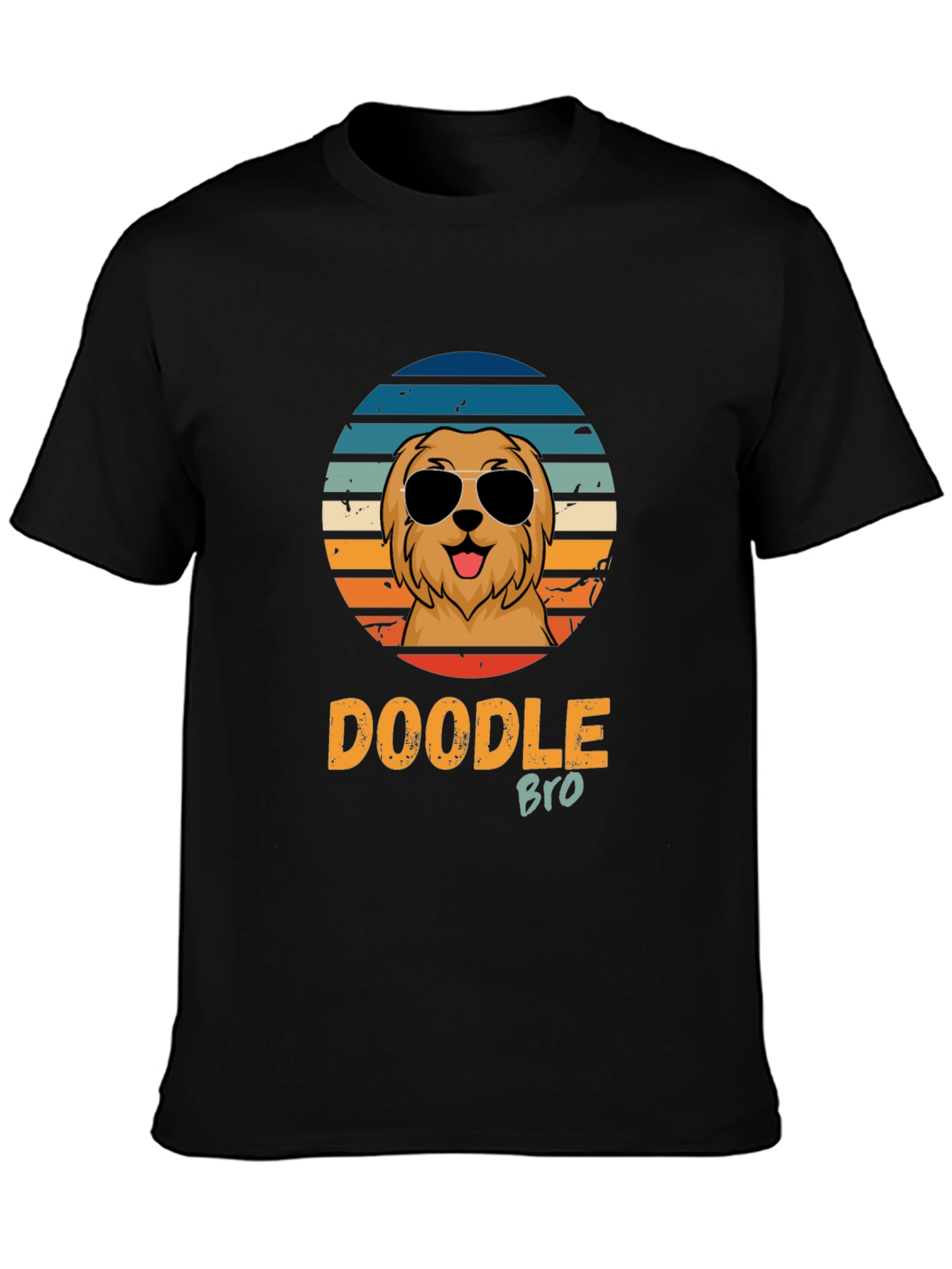 Show off your love for Doodles with this stylish black T-shirt. Featuring a cool, sunglasses-wearing Doodle graphic set against a vintage-inspired striped circle, this tee is sure to turn heads. The design includes the fun text "DOODLE BRO," making it a perfect gift for any Doodle owner or enthusiast. Made from comfortable material, this shirt is great for everyday wear, dog walks, or casual outings. Express your passion for your furry friend with this unique and eye-catching T-shirt!
