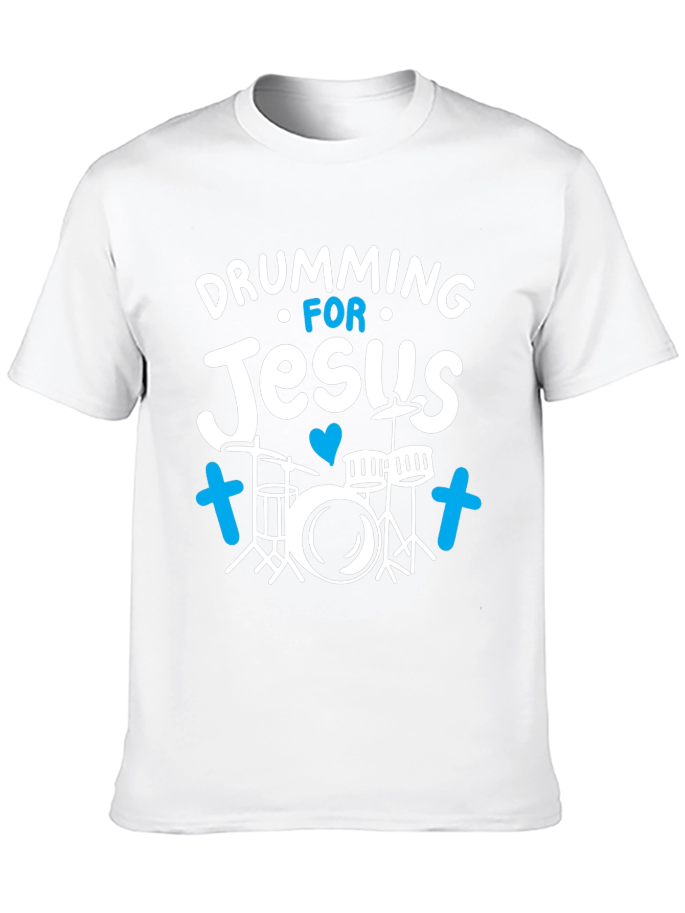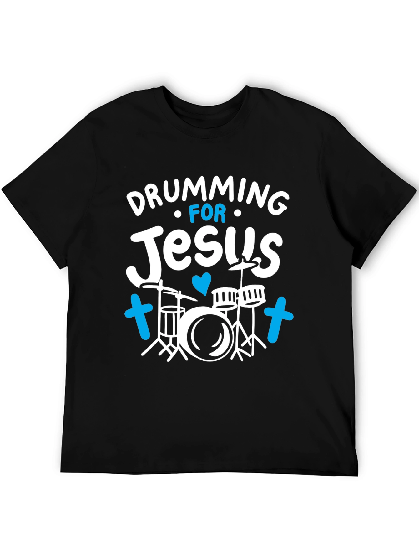 Show your love for music and faith with this eye-catching "Drumming for Jesus" T-shirt! This black tee features a playful, whimsical design with the phrase "Drumming for Jesus" emblazoned in a cheerful font. A charming drum kit graphic is flanked by cute blue crosses, adding a touch of Christian flair to the design. Made from a comfortable material, this T-shirt is perfect for church events, band practice, casual wear, or as a thoughtful gift for the Christian drummer in your life. Wear your faith with pride and style!