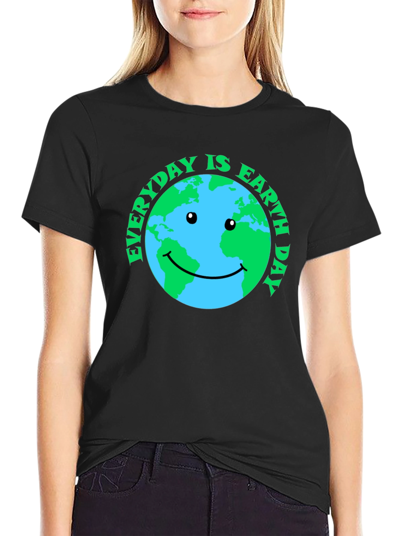 Show your love for our planet with this eye-catching Earth Day T-shirt! The shirt features a vibrant graphic of planet Earth with a cheerful smile, surrounded by the slogan "Everyday is Earth Day" in bold green letters. Made from a comfortable, breathable fabric, this classic black tee is perfect for everyday wear and making a statement about environmental awareness. Whether you're attending an Earth Day event, running errands, or simply want to express your commitment to sustainability, this t-shirt is a stylish and impactful choice. It's also a great conversation starter! Available in various sizes, it makes a thoughtful gift for eco-conscious friends and family.