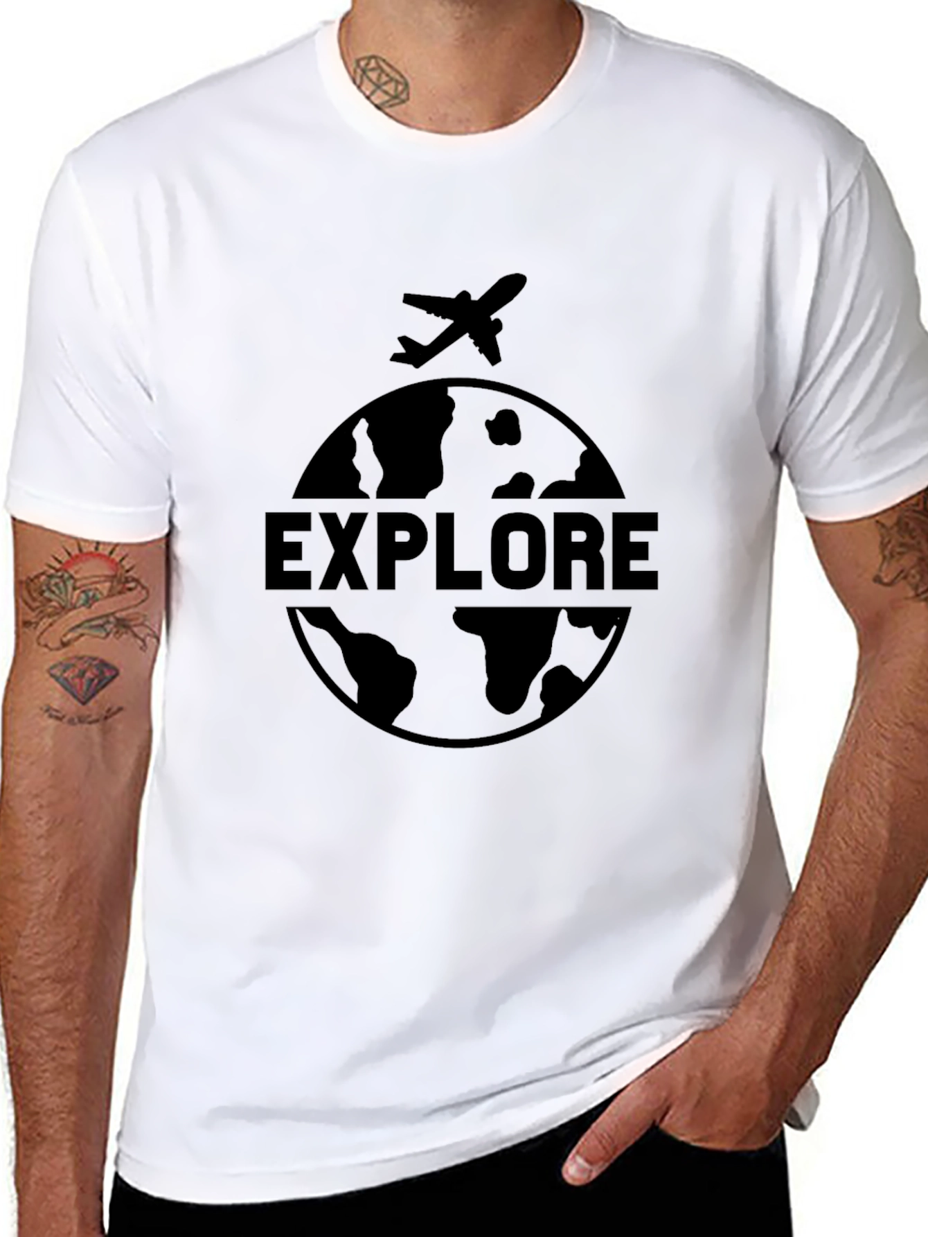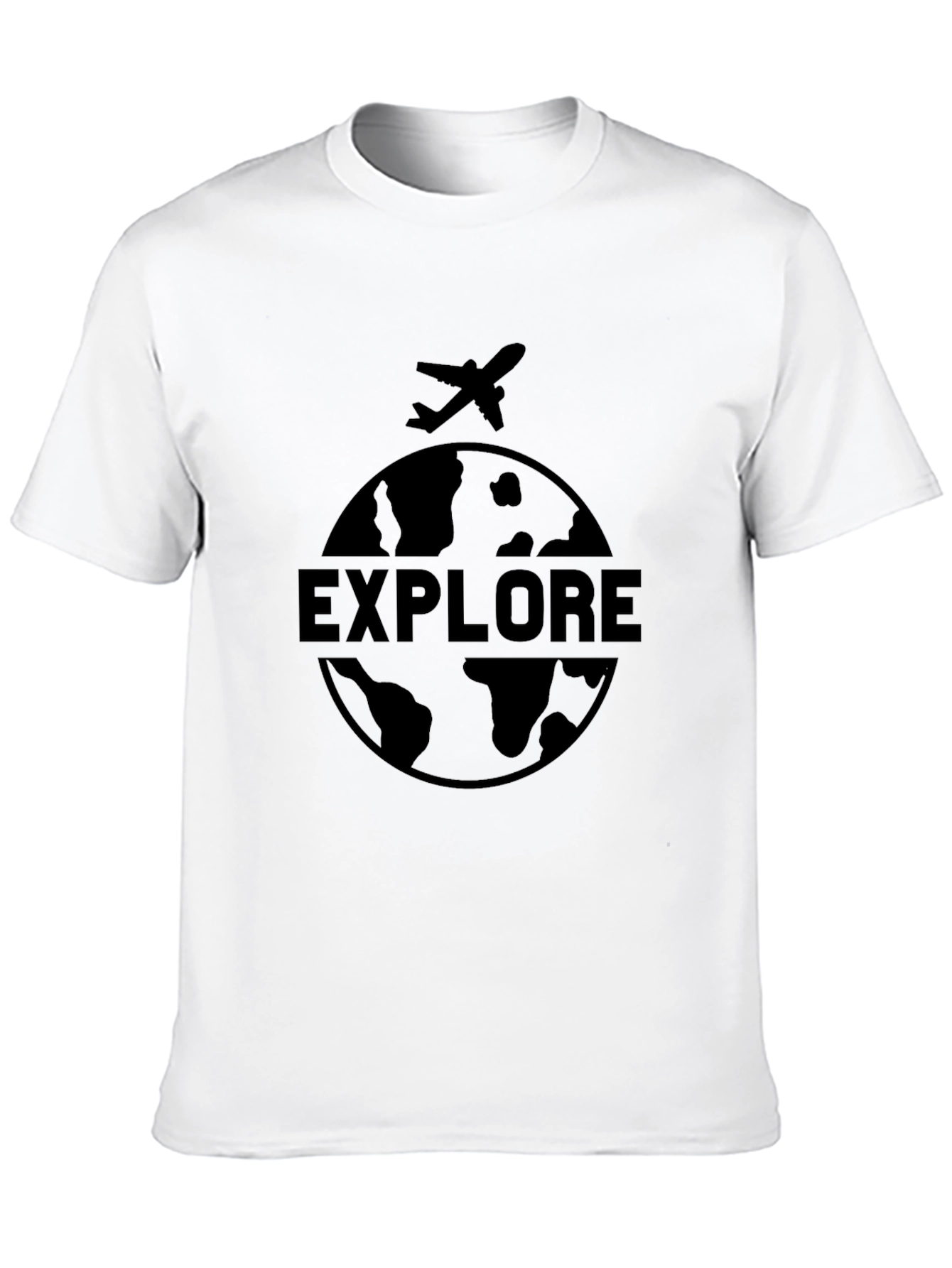 Embark on your next adventure with this stylish black graphic tee. Featuring a captivating globe design with an airplane and the word "EXPLORE", this t-shirt is perfect for travel enthusiasts and anyone with a passion for discovery. Made from a comfortable fabric, it offers a relaxed fit for all-day wear. Its simple yet bold design makes it a versatile addition to your wardrobe, easily paired with jeans, shorts, or casual pants. Whether you're planning your next trip or just want to express your love for travel, this tee is a great choice.