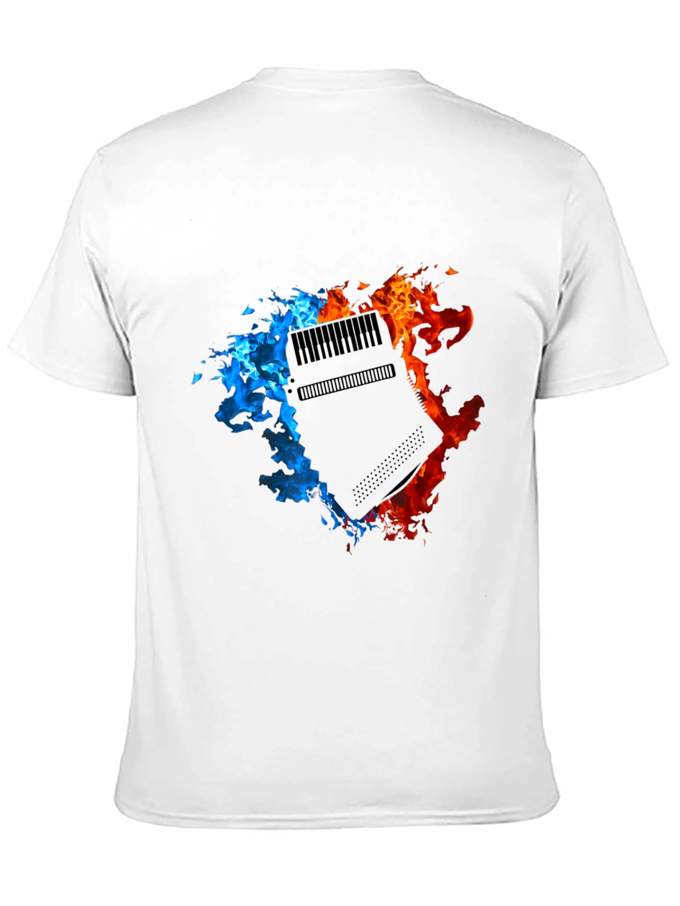 Ignite your style with this eye-catching black t-shirt! Featuring a bold graphic of a retro console split between vibrant blue and fiery red flames, this shirt is a statement piece. The design adds a dynamic and edgy touch to the classic tee. Made from a soft, comfortable fabric, it's perfect for everyday wear. Ideal for gamers, tech enthusiasts, or anyone who loves unique apparel. Stand out from the crowd with this cool and casual, conversation-starting t-shirt.