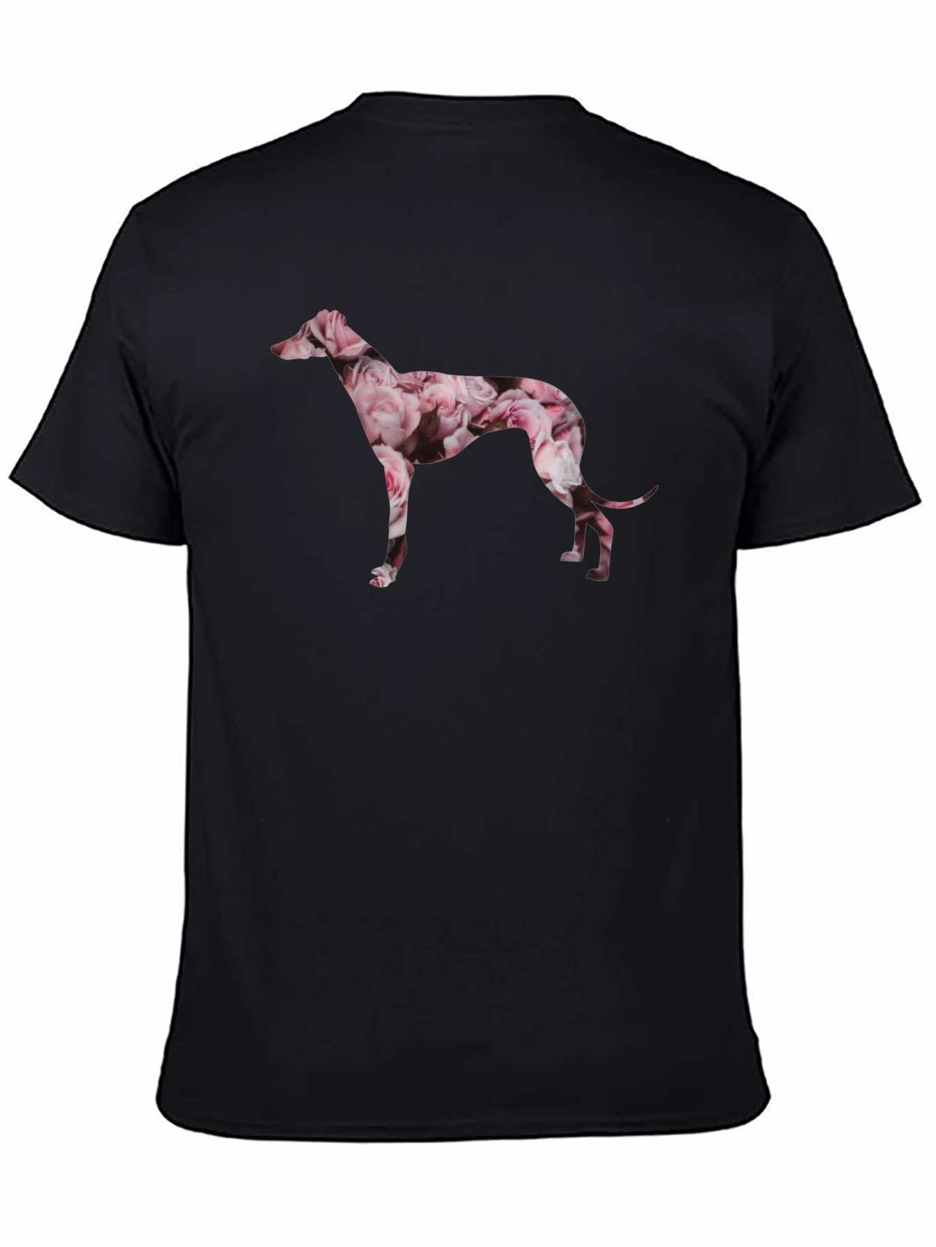 Show off your love for greyhounds with this unique and stylish t-shirt. This black crewneck tee features a silhouette of a greyhound filled with a beautiful floral pattern in pinks and whites, creating a striking and eye-catching design. Crafted from a soft, comfortable fabric, this shirt is perfect for everyday wear. Its relaxed fit makes it ideal for casual outings, dog walks, or simply lounging at home. A great gift idea for greyhound owners or anyone who appreciates distinctive, artistic apparel. Make a statement with this one-of-a-kind floral greyhound t-shirt!