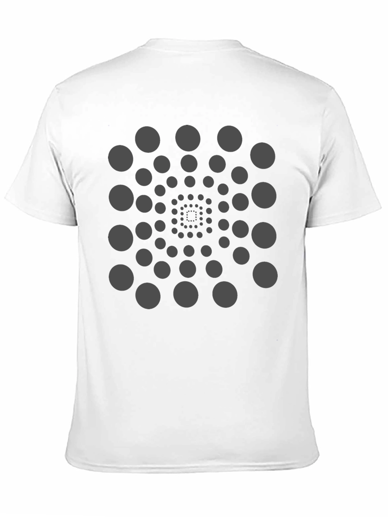 Showcase your unique style with this eye-catching black t-shirt. The shirt features a fascinating geometric design of gray circles arranged in a hypnotic spiral pattern, drawing the eye and adding visual interest. Made from comfortable, breathable fabric, this tee is perfect for everyday wear or making a statement. Pair it with jeans or shorts for a casual yet stylish look. Express your individuality and turn heads with this distinctive and comfortable t-shirt, a must-have addition to any modern wardrobe.