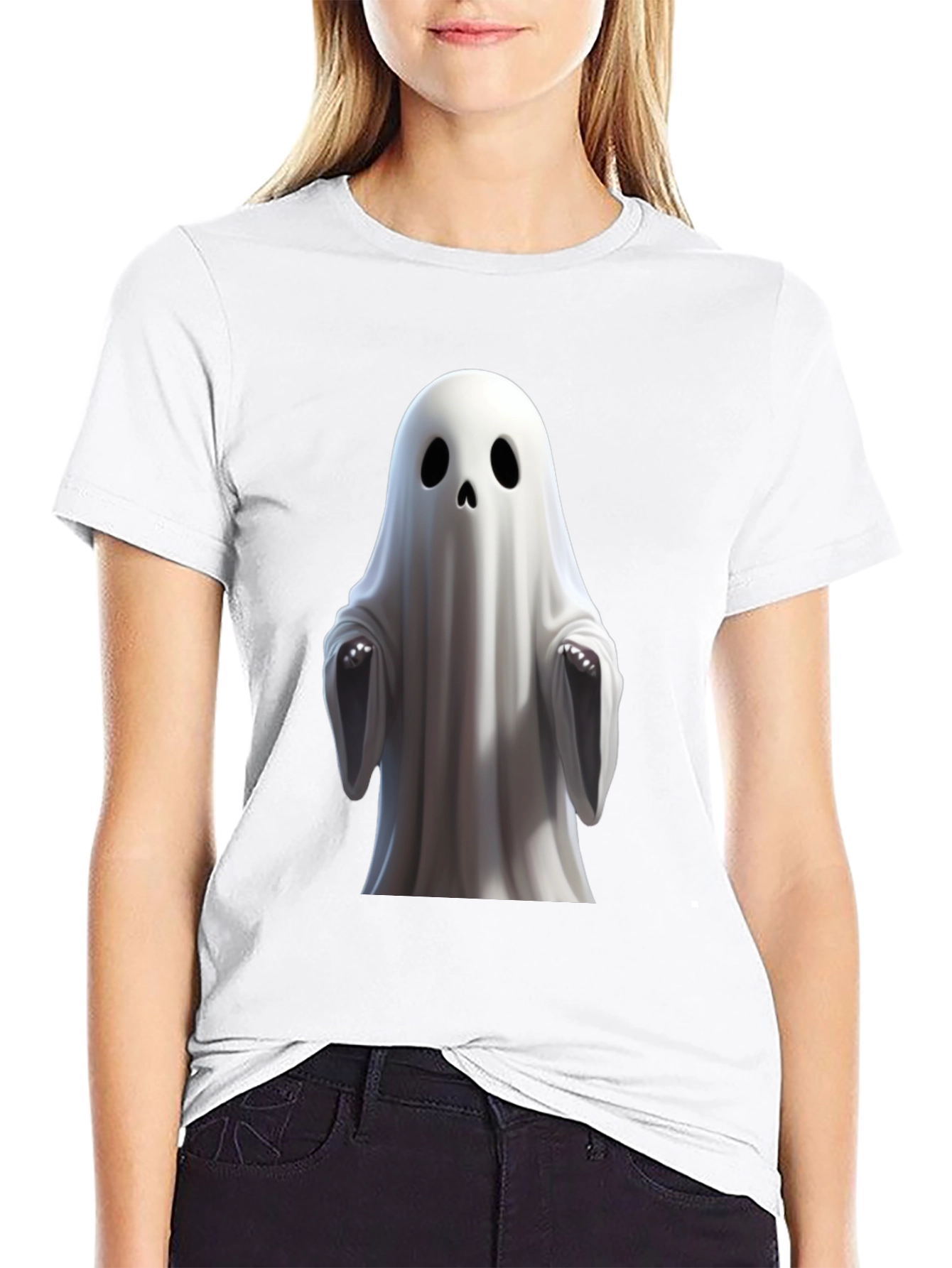 Get ready for Halloween with this fun and spooky ghost graphic tee! Featuring a minimalist ghost design on a classic black t-shirt, it's perfect for adding a touch of eerie charm to your wardrobe. The design appears to be digitally printed, ensuring high quality and durability. Made from a comfortable and breathable fabric, this shirt is great for casual wear, parties, or trick-or-treating. Stand out this Halloween with this unique and stylish tee. It also makes a great gift for anyone who loves all things spooky!