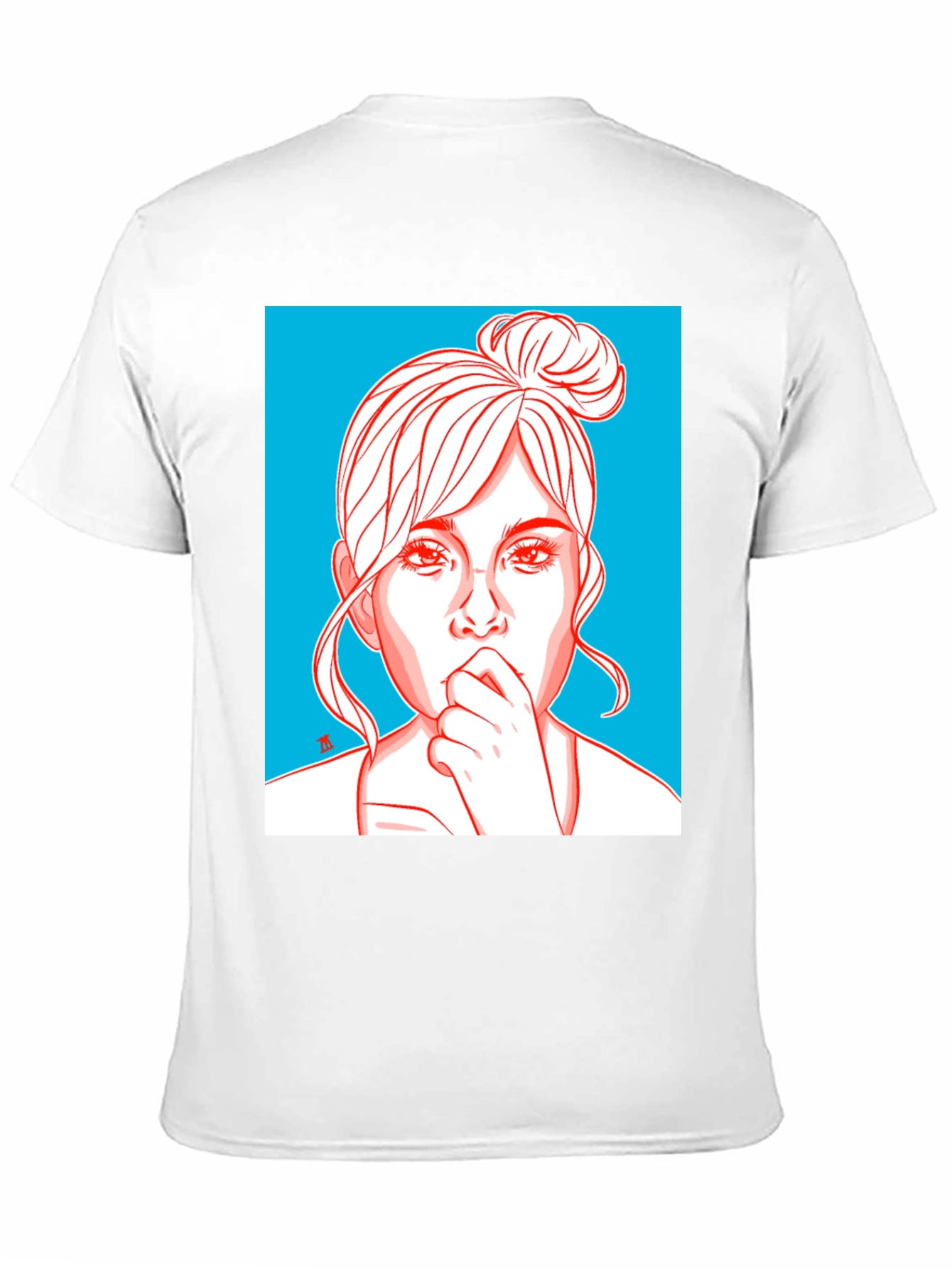 Showcase your unique style with this eye-catching graphic tee. This black t-shirt features a bold and artistic design of a woman's portrait, outlined in red against a striking light blue backdrop. The minimalist yet detailed artwork adds a touch of modern sophistication to your casual wardrobe. Made from soft, breathable fabric, this tee offers all-day comfort. Perfect for everyday wear, concerts, or expressing your individuality, this graphic tee is a must-have for anyone who appreciates art and fashion.
