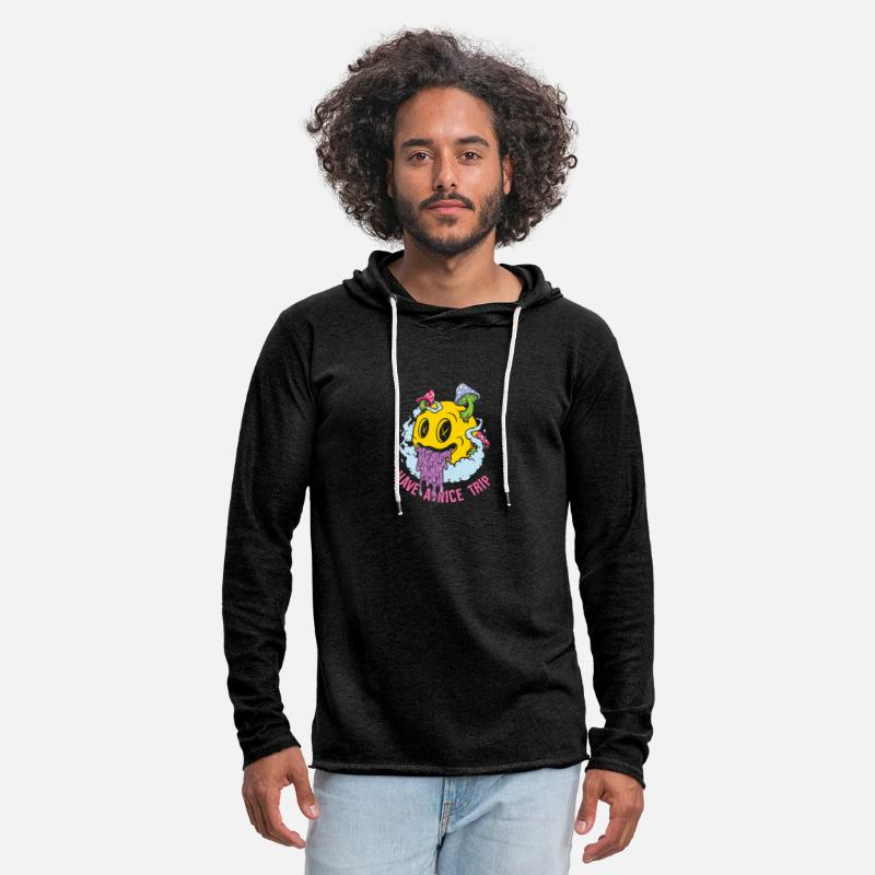 Light as a long sleeve t-shirt with the features of a hoodie, our unisex lightweight terry hoodie is a super-versatile choice. When the weather is a little too cold for a short-sleeved tee and a little too warm for a heavy hoodie, this is the way to go. Terrycloth textures and rough-cut hems make this item an eye-catching choice. Bottom hem and sleeves have a raw edge.