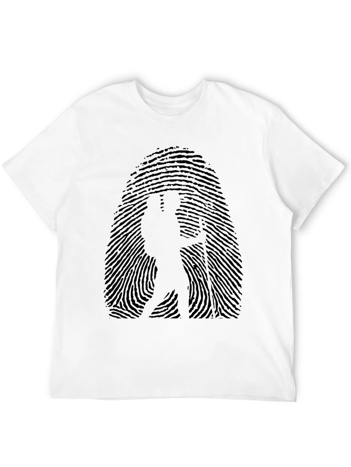 Embrace your love for the outdoors with this unique hiker fingerprint t-shirt. This stylish black tee features a distinctive fingerprint design, within which is the silhouette of a hiker with a walking stick, perfect for expressing your adventurous spirit. The design is subtly integrated and makes a statement without being too bold. Made from soft and breathable fabric, this t-shirt offers all-day comfort whether you're hitting the trails or simply enjoying a casual day out. Its classic fit is flattering and versatile, making it an essential addition to any nature lover's wardrobe. Wear your passion and let this tee be a conversation starter about your next hiking expedition.