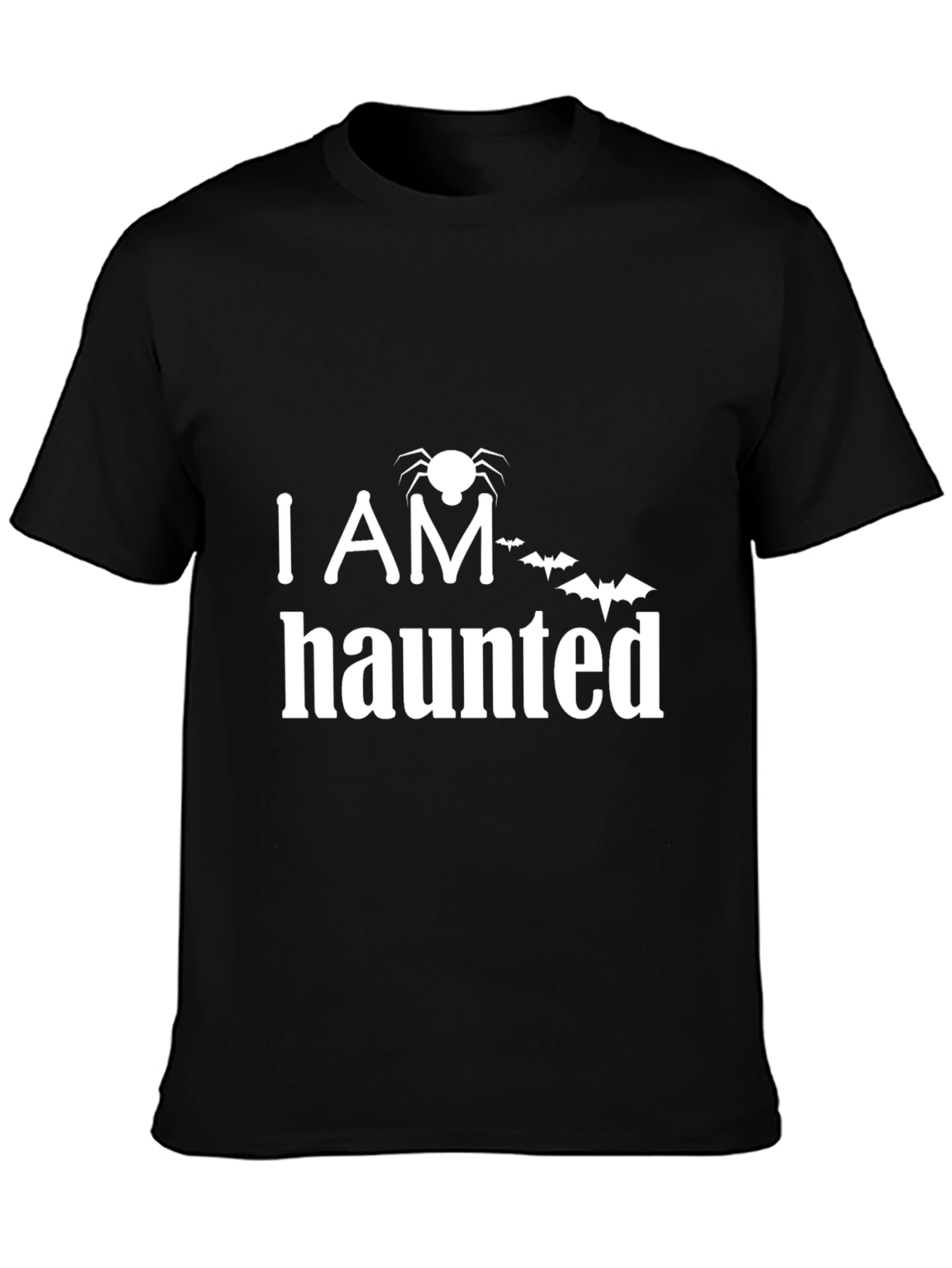 Get ready for Halloween with this spooky and stylish "I AM Haunted" t-shirt. Made from comfortable, soft fabric, this tee features a bold, eye-catching design with a spider and bats that's perfect for expressing your love for the Halloween season. The classic fit ensures a relaxed and comfortable wear, ideal for Halloween parties, trick-or-treating, or casual everyday wear. This unique t-shirt is a must-have addition to your Halloween wardrobe, making you stand out with its playful and eerie message. Whether you're attending a costume party or just want to show off your spooky spirit, this "I AM Haunted" tee is the perfect choice.