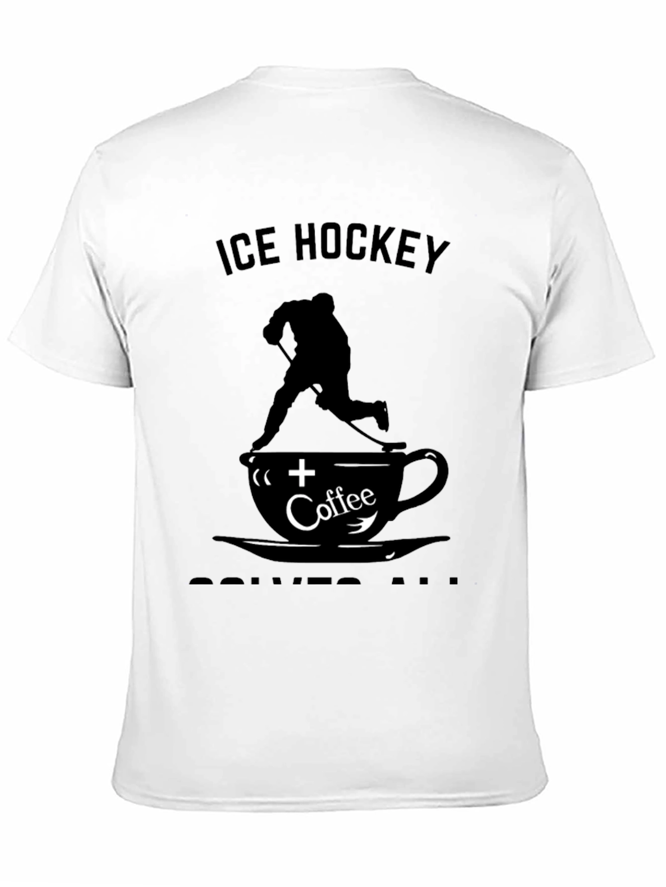 Show off your love for ice hockey and coffee with this stylish t-shirt. The shirt features a striking graphic design of an ice hockey player in silhouette skating on a coffee cup. The bold text "Ice Hockey" and "Coffee" add to the unique design. Made from soft, breathable cotton, this tee offers a comfortable fit. The classic black color makes it a versatile addition to any wardrobe. Wear it to the rink, coffee shop, or while lounging at home.