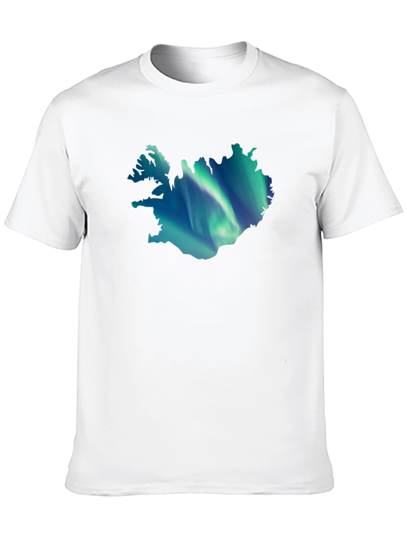 Show your love for Iceland with this unique graphic t-shirt. The black tee features a silhouette of Iceland filled with a stunning aurora borealis design. Made from a soft, comfortable fabric, this shirt is perfect for casual wear, travel, or as a souvenir. The vivid colors of the aurora create a striking contrast against the black background. Whether you've visited Iceland or dream of seeing the Northern Lights, this tee is a great way to express your passion. A stylish addition to any wardrobe.