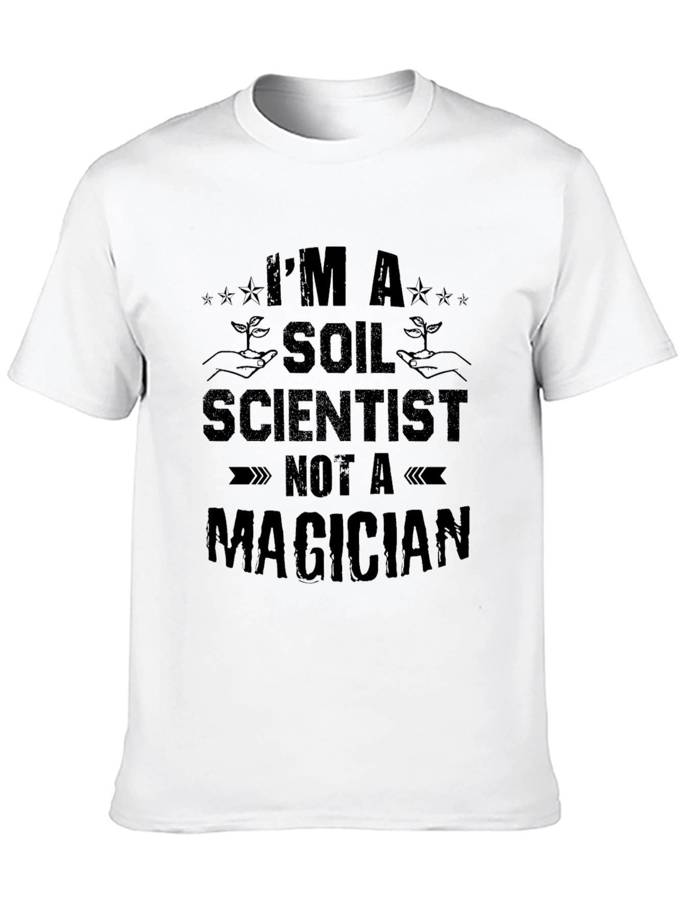 This classic black tee boldly proclaims 'I'm a Soil Scientist, Not a Magician,' making it a fun and unique statement piece. Featuring a distressed print for a vintage feel, the design incorporates subtle botanical elements, showcasing appreciation for nature. Made from a soft-looking, breathable fabric, this t-shirt offers both comfort and style. Ideal for casual wear, science conferences, or as a thoughtful gift for the plant-loving soil scientist in your life, it's sure to spark conversations and showcase your passion.