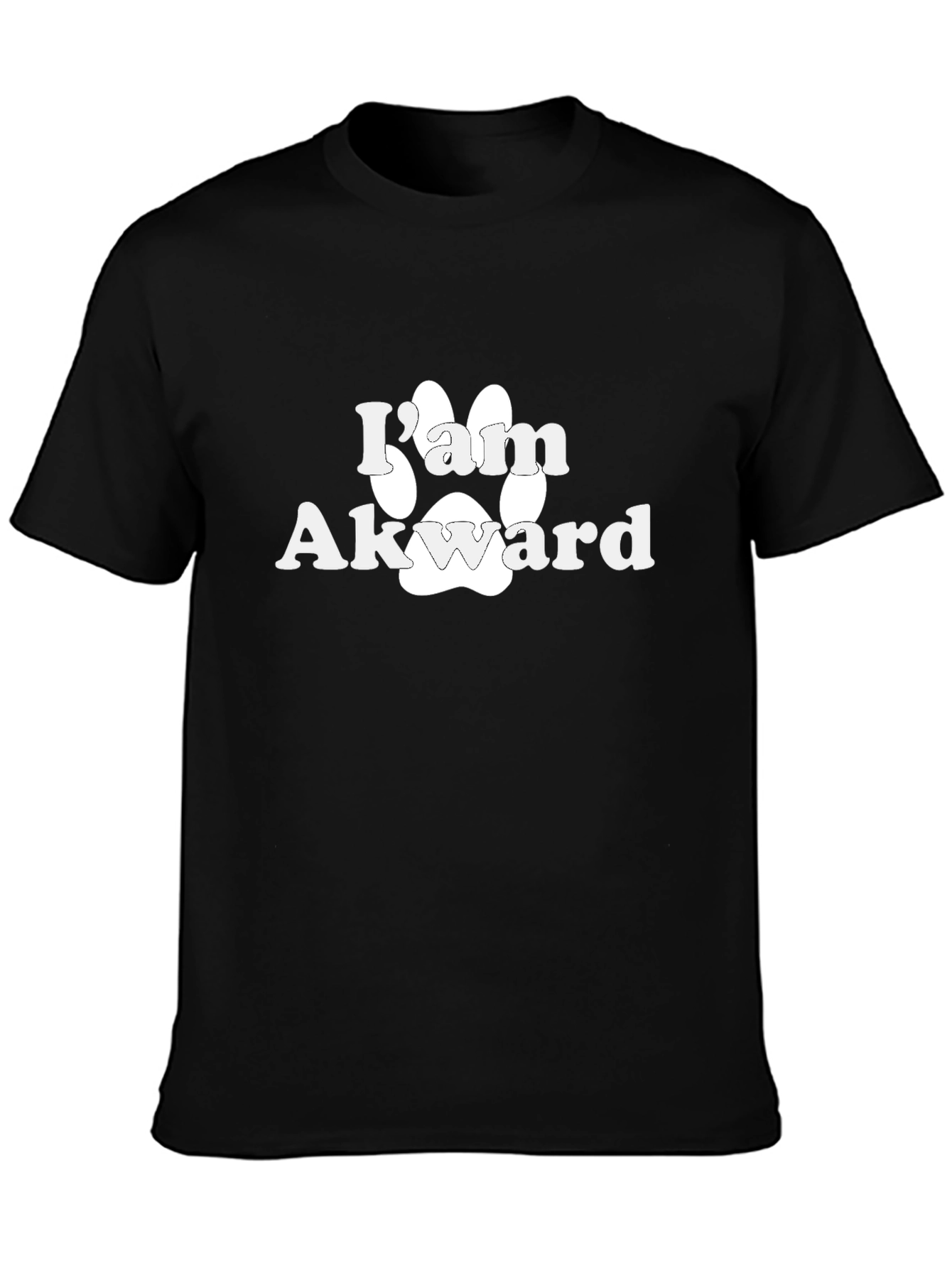Show off your quirky side with this unique black t-shirt featuring a playful "I'm Awkward" graphic integrated with a cute paw print design. Made from a soft, breathable fabric, this tee offers both comfort and style. The crisp white print stands out boldly against the black background, making it a statement piece. This t-shirt is perfect for casual outings, relaxed weekends, or expressing your fun personality. Pair it with jeans, shorts, or leggings for a versatile and effortlessly cool look. A great conversation starter and a comfortable addition to your wardrobe.