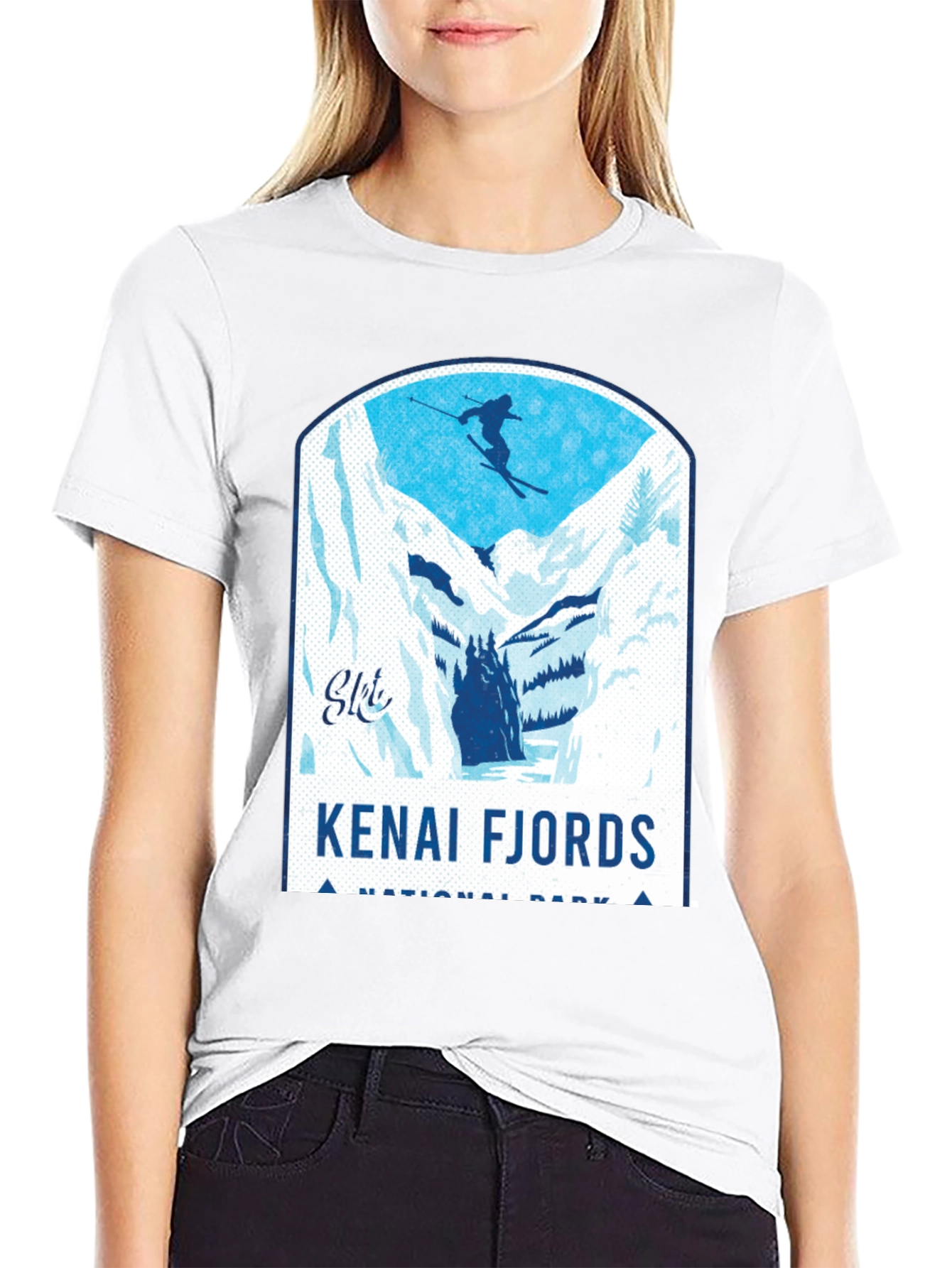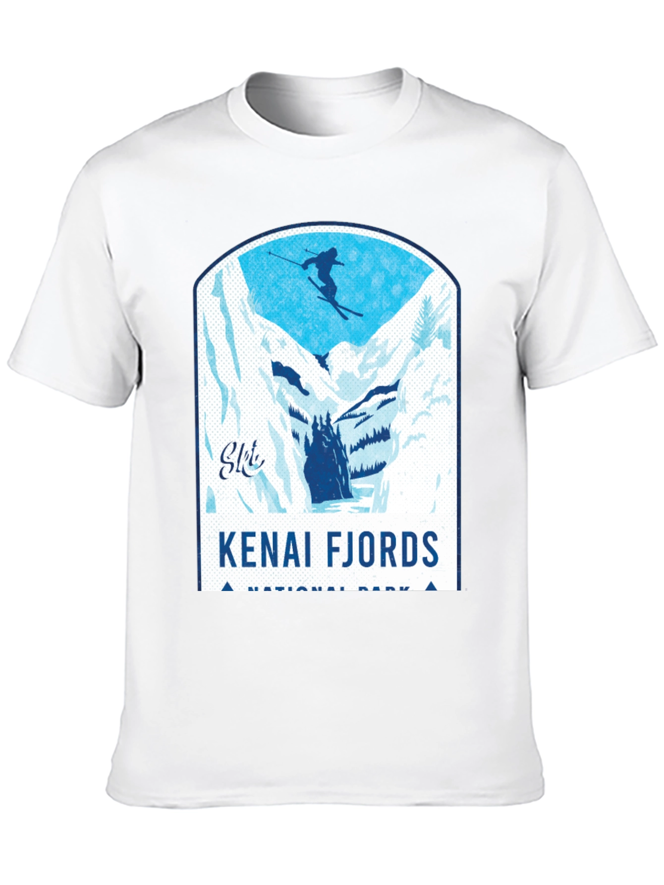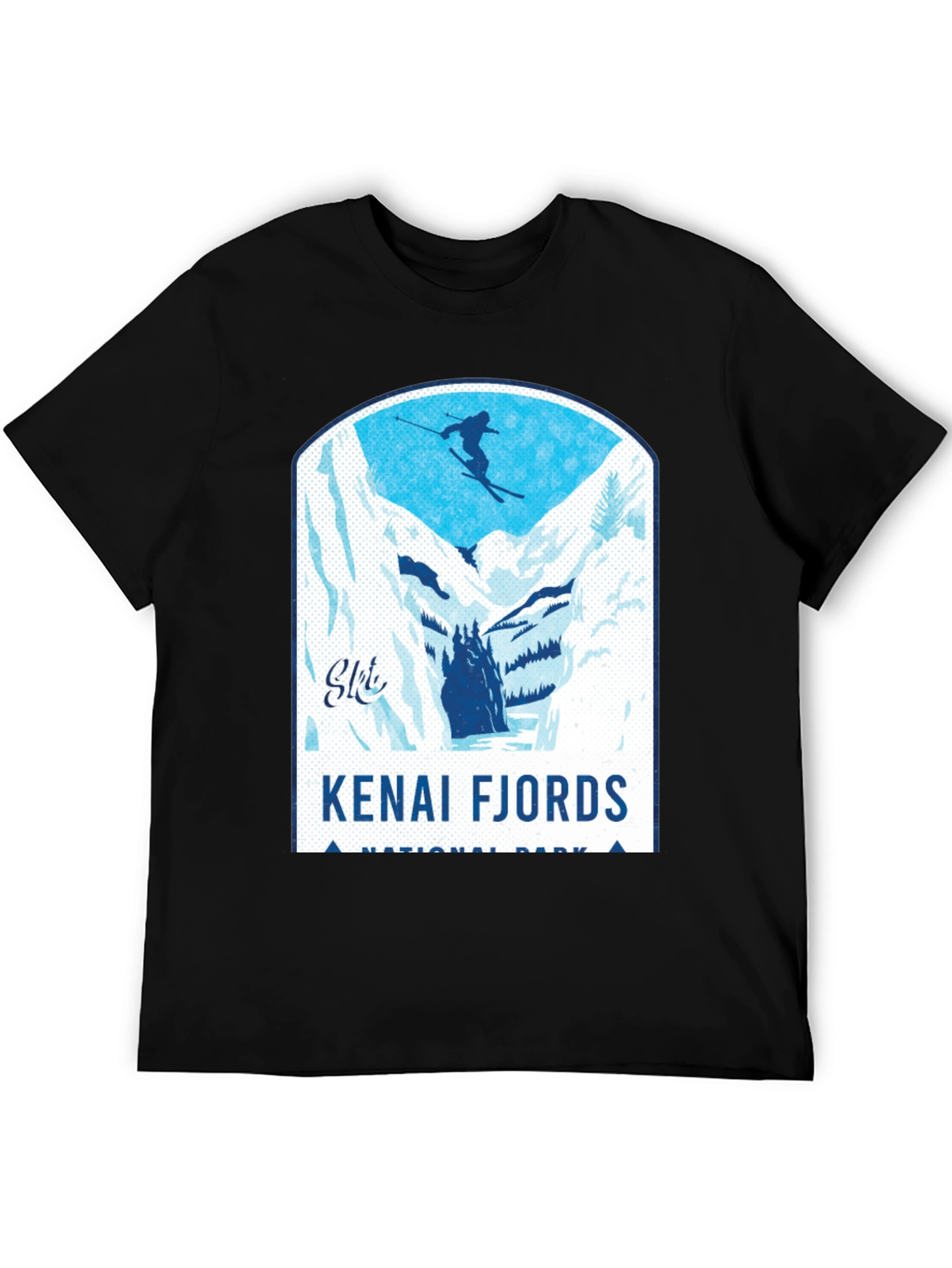 Show off your love for skiing and the Kenai Fjords National Park with this stylish black t-shirt! Featuring a bold graphic of a skier amidst a stunning fjord landscape, this tee is perfect for outdoor enthusiasts. Made from a comfortable, breathable fabric, it ensures all-day comfort. The design showcases snow-capped mountains and icy waters, capturing the spirit of adventure. Ideal for casual wear or as a souvenir from your Alaskan travels, this shirt makes a statement. The crisp graphics and durable print ensure that it will remain a favorite in your wardrobe for years to come. Get yours now and represent your passion for nature and skiing!