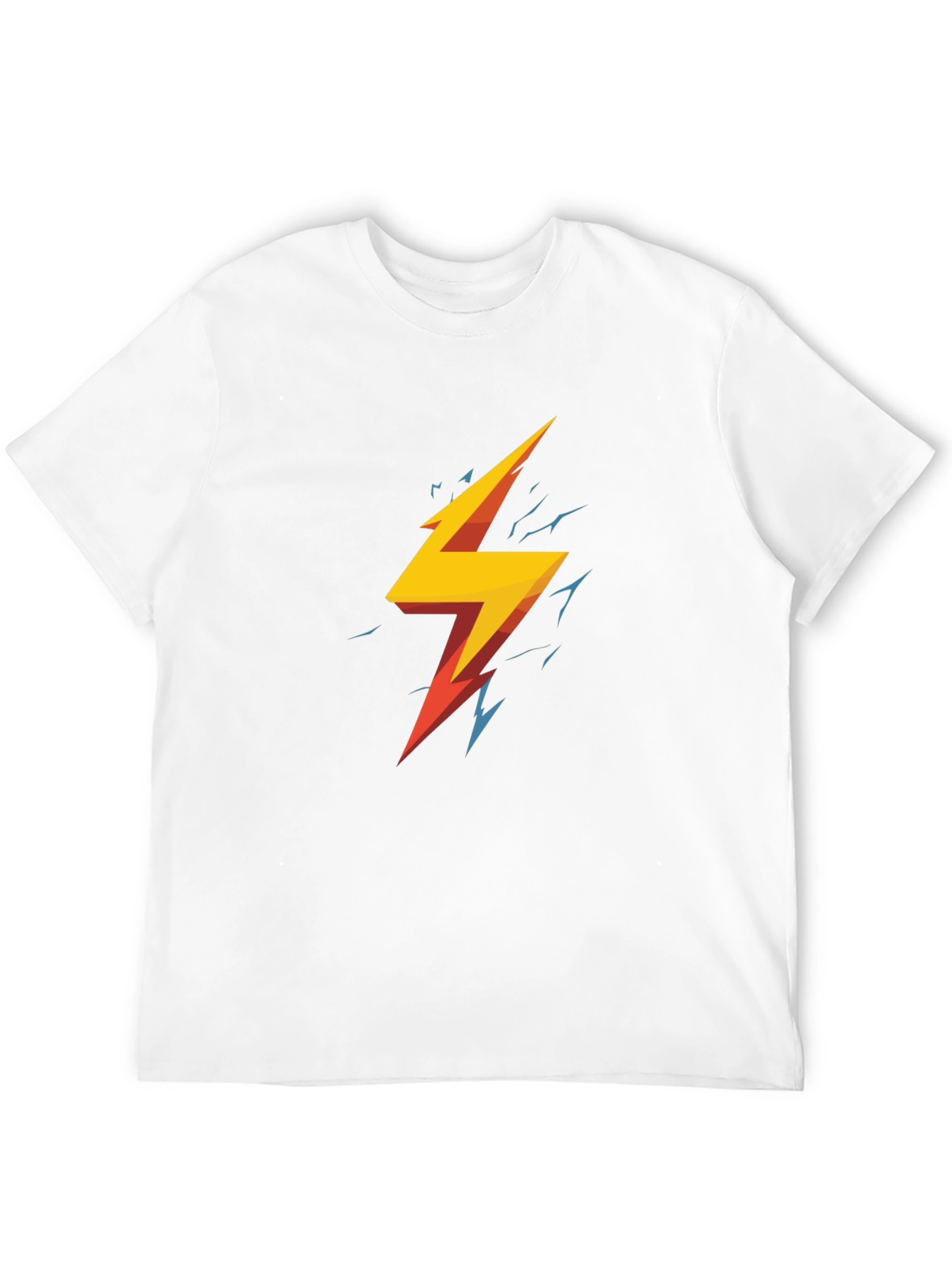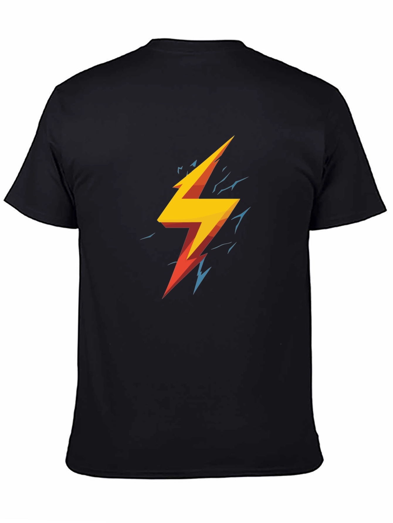 Electrify your wardrobe with this striking black t-shirt featuring a vibrant lightning bolt graphic. The design showcases bold yellow and red hues with edgy blue accents, creating a dynamic and eye-catching look. Crafted from a comfortable and breathable fabric, this tee is perfect for everyday wear. Ideal for casual outings, concerts, or expressing your unique style, this t-shirt is a versatile addition to any wardrobe. The bold graphic makes a statement, while the classic black color ensures it pairs well with jeans, shorts, or layered under a jacket. Make a bold statement with this electric tee!