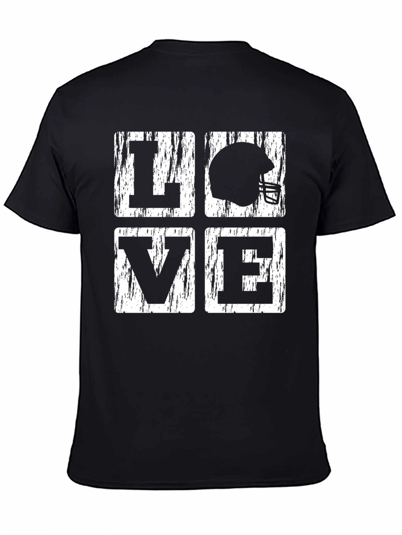Show your passion for football with this stylish LOVE graphic tee! This black t-shirt features a bold "LOVE" design, with a football helmet icon replacing the 'O'. The distressed, vintage-inspired print adds a unique and trendy touch. Crafted from comfortable cotton, this tee is perfect for game day, casual outings, or everyday wear. Its eye-catching design makes it a great conversation starter for football fans. The classic fit ensures a relaxed and flattering look for both men and women. Show your love for football with this must-have tee!