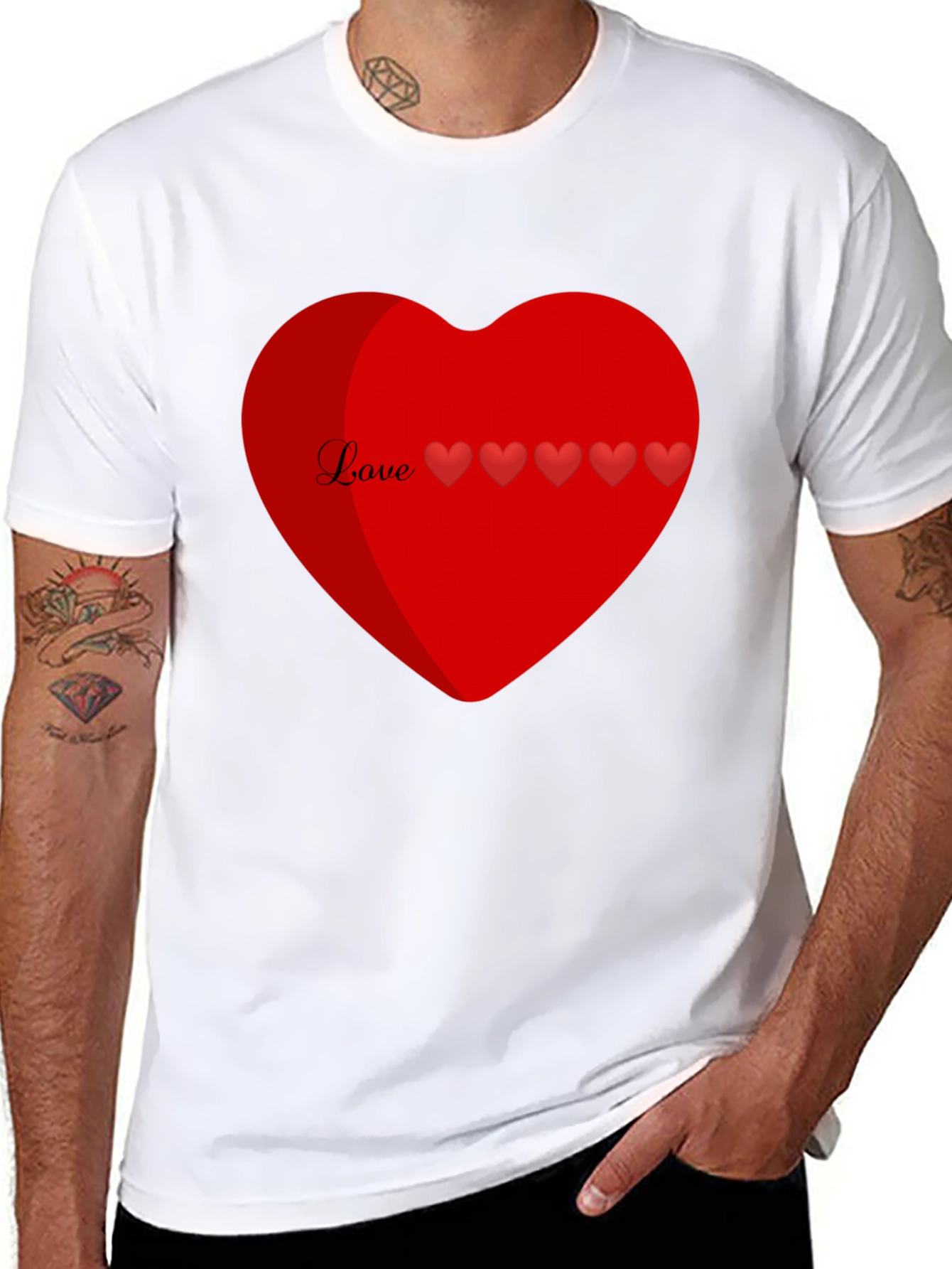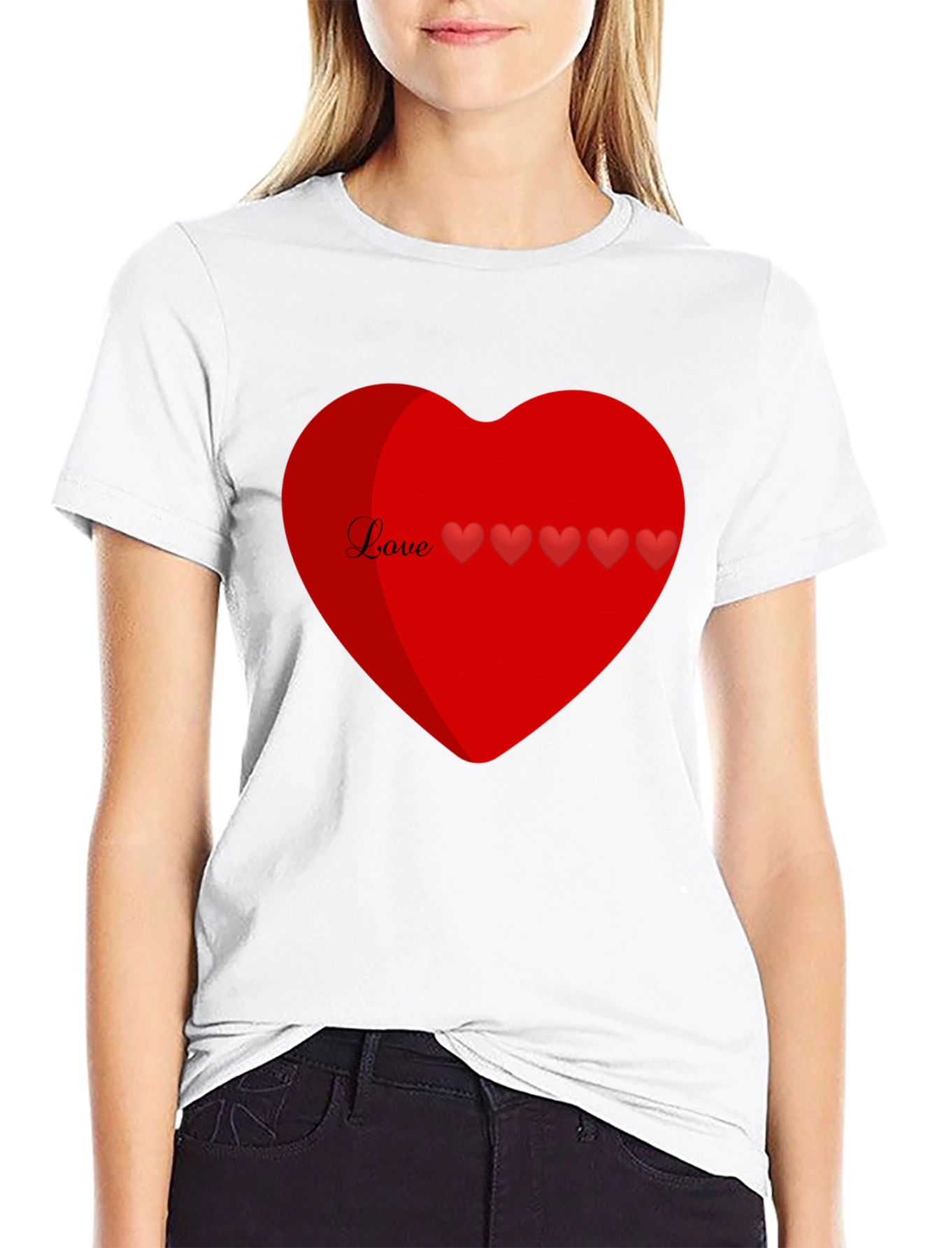 Show your love with this stylish black t-shirt. Featuring a large, vibrant red heart graphic on the chest. A charming "Love" script and a row of smaller hearts adorn the top of the heart. Made from a comfortable and breathable fabric, this tee is perfect for casual wear. Whether you're celebrating Valentine's Day or just want to spread the love, this t-shirt is a great choice. Dress it up with jeans and a jacket or keep it casual with shorts and sneakers. A perfect gift for that special someone. This t-shirt will keep you comfortable while making a statement. Grab yours today and wear your heart on your sleeve!
