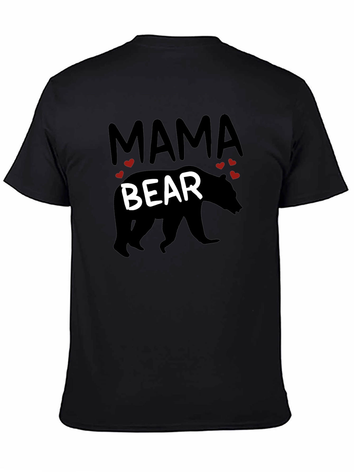 Show your love and pride with this stylish "Mama Bear" graphic tee! This classic black t-shirt features a bold design with the words "Mama" and "Bear" and adorable heart accents. The comfortable fit makes it ideal for everyday wear, whether you're running errands, spending time with family, or simply relaxing at home. Made from a soft, breathable fabric, this tee will keep you feeling great all day long. Makes a thoughtful and heartwarming gift for any special mom in your life. Embrace your inner mama bear with this must-have t-shirt!