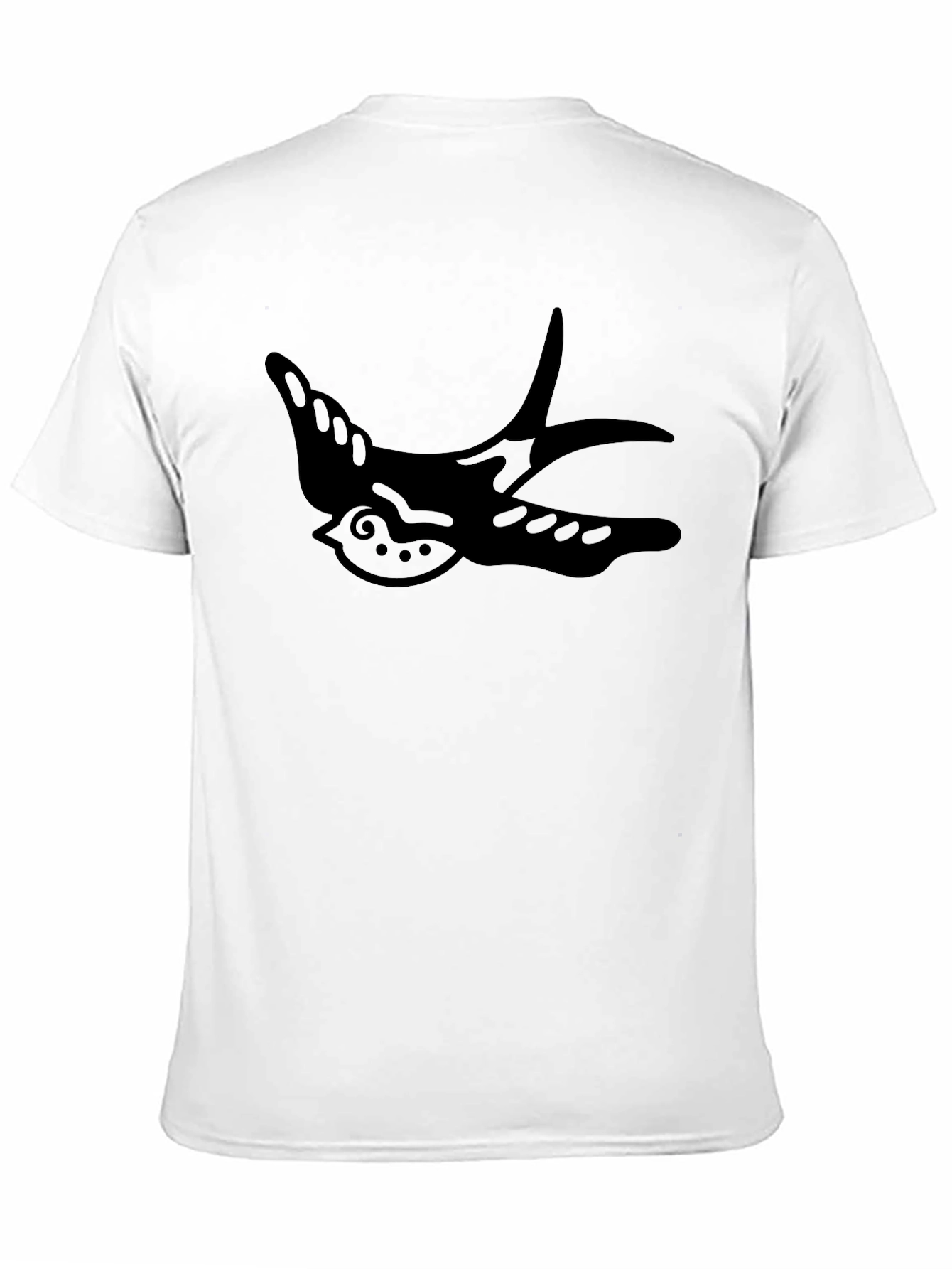 This classic men's black t-shirt features a striking swallow graphic. The shirt appears to be made from a comfortable, soft-to-the-touch fabric. The swallow design adds a unique and stylish touch, making it a standout piece in any wardrobe. Ideal for casual wear, this t-shirt can be paired with jeans, shorts, or even layered under a jacket for a versatile look. Show off your individual style with this eye-catching graphic tee. Perfect for everyday wear or a relaxed night out.