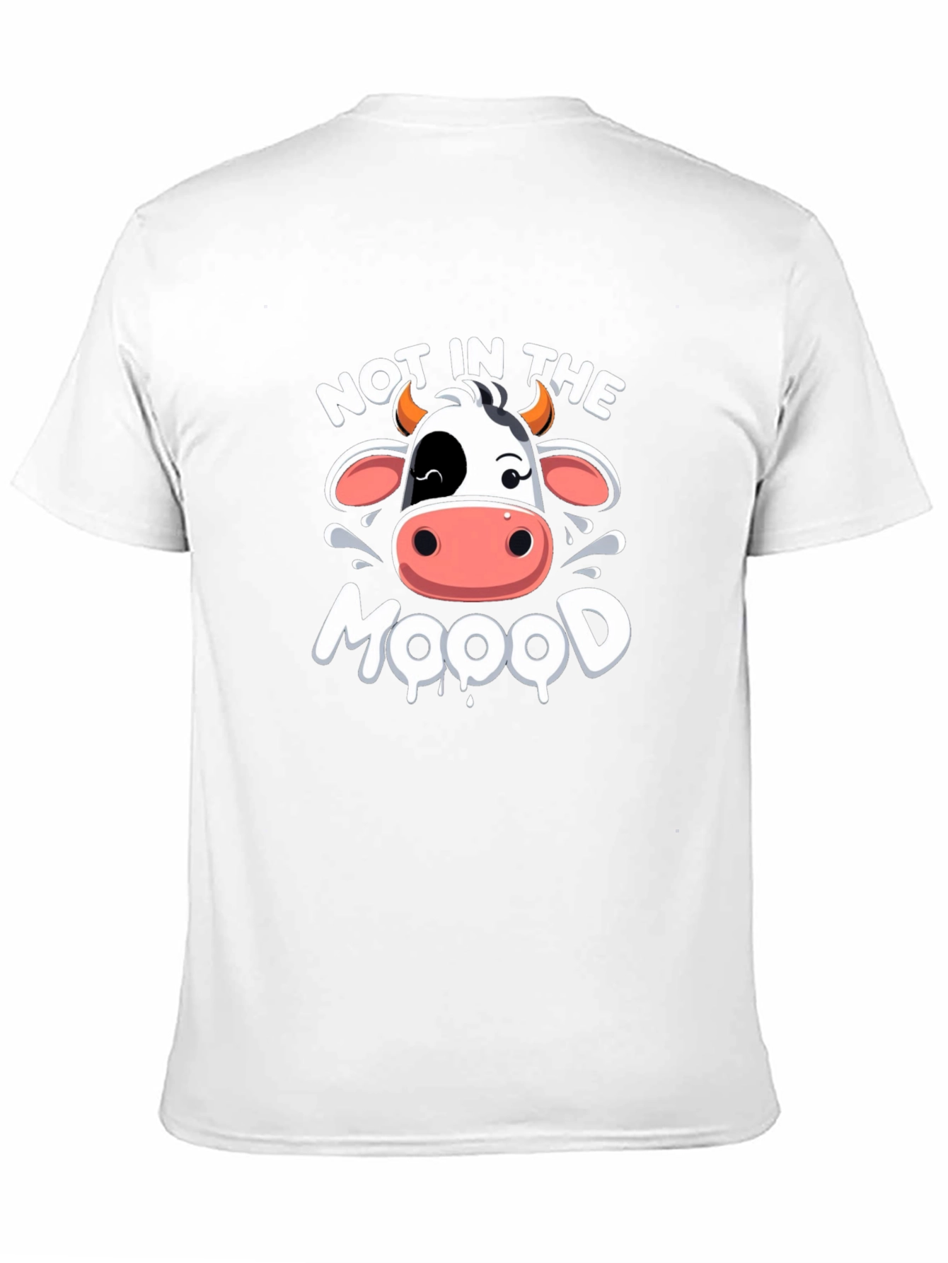 Show off your playful side with this comfortable black graphic tee. Featuring a cartoon cow face with the phrase 'NOT IN THE MOOD' displayed prominently. This eye-catching design is perfect for casual wear and making a statement. Made from soft, breathable fabric, this t-shirt is ideal for everyday comfort and style. Express your unique personality with this fun and trendy piece. A great conversation starter for those days you'd rather be left alone!