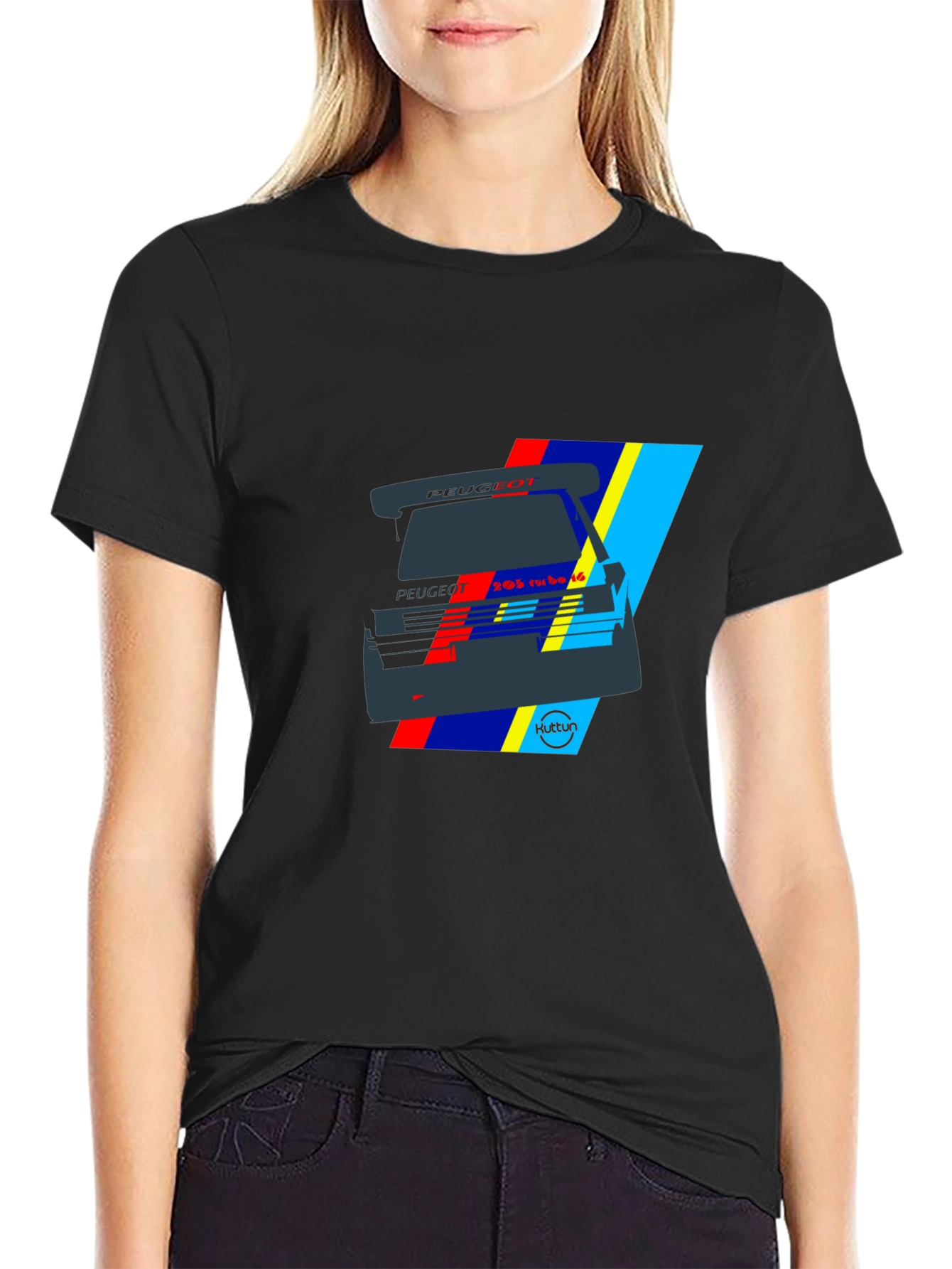 Show off your love for classic rally cars with this stylish black t-shirt. Featuring a bold, graphic design inspired by the iconic Peugeot 205 Turbo 16, this shirt is a must-have for motorsport enthusiasts. The vibrant colors and unique illustration capture the essence of the legendary race car, making it a standout piece in any wardrobe. Made from a soft, comfortable fabric, this tee is perfect for casual wear, car meets, or simply expressing your passion for automotive history. Get yours today and wear your love for rallying on your sleeve!