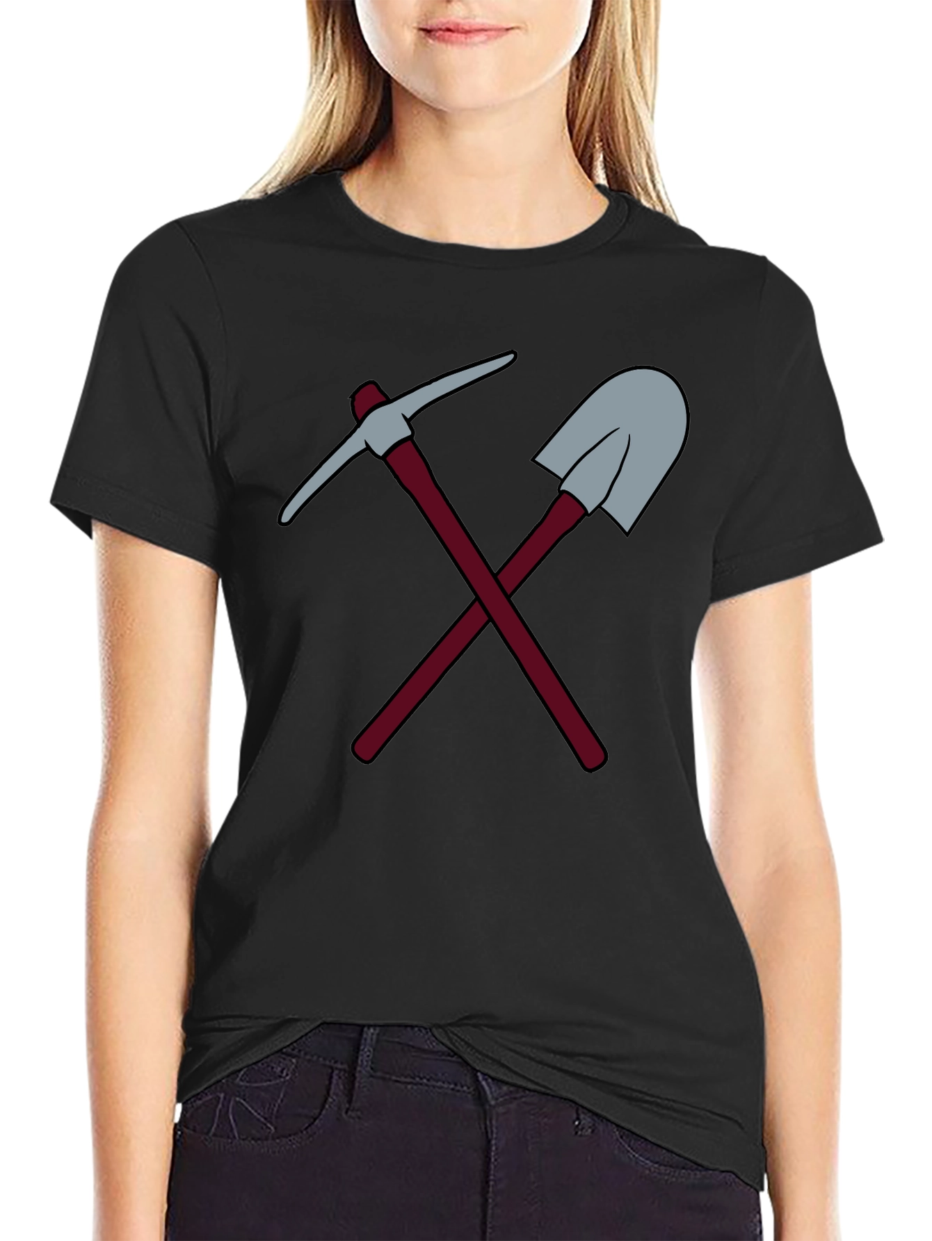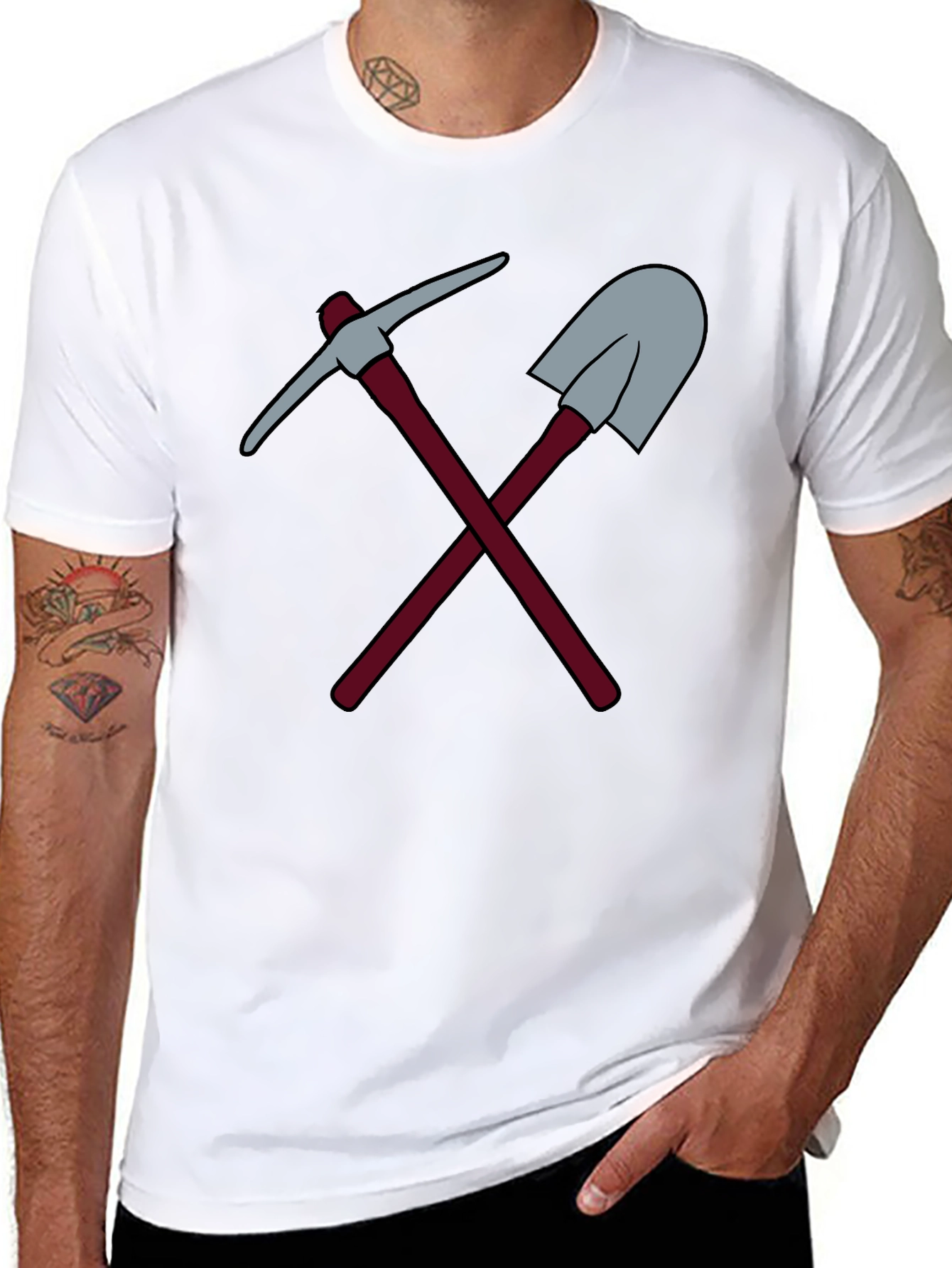 Show off your rugged side with this unique graphic tee! Featuring a bold design of crossed pickaxe and shovel, this shirt is perfect for miners, construction workers, or anyone who appreciates a touch of industrial flair. The design is printed on a comfortable, durable fabric, making it ideal for everyday wear. The classic cut and black color ensure it pairs well with jeans, shorts, or work pants. Whether you're on the job site or just relaxing on the weekend, this tee makes a statement. A must-have for anyone looking to add a bit of edgy style to their wardrobe.